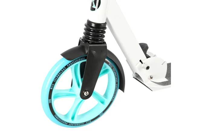 Zadní blatník slouží jako přítlačná brzda. Široká řídítka jsou opatřena gumovými rukojeťmi, které zajišťují pevný a pohodlný úchop. Tlumič na předním kole pohlcuje nerovnosti. 200 milimetrů velká kola jsou osazena ložisky ABEC 7. Tato kombinace zajišťuje rychlou, plynulou a bezpečnou jízdu. Blatník na předním kole a skládací stojánek jsou drobnostmi, které přispívají k maximálnímu možnému komfortu z jízdy a k celkové radosti ze samotného používání modelu MH2090.