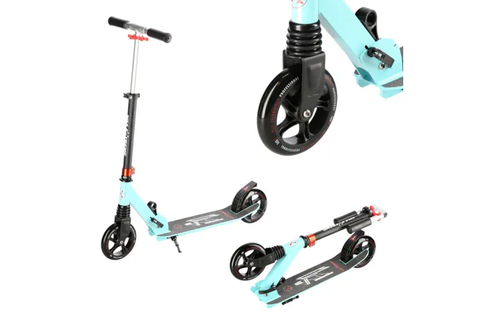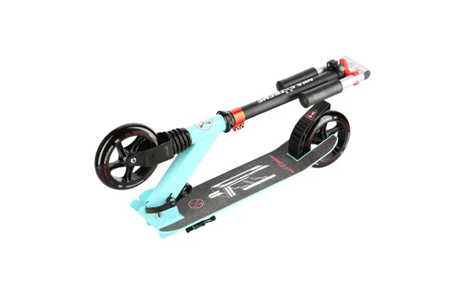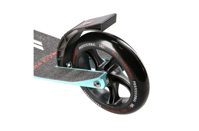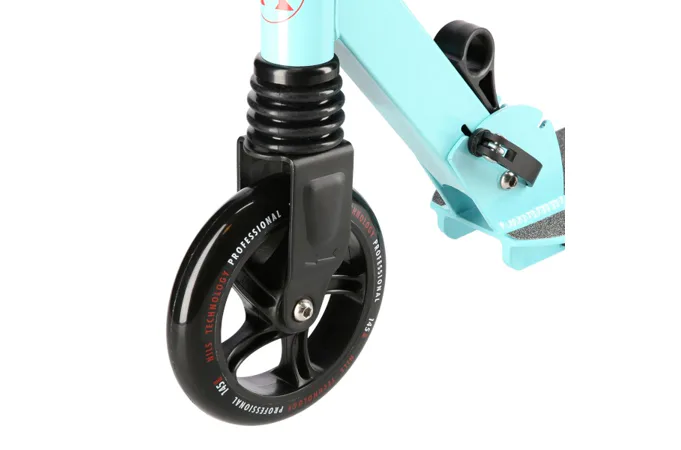 Systém odpružení předního kola zvyšuje jízdní komfort. Tlumič pohlcuje nárazy a jízda po nerovném asfaltu, nebo dlažebních kostkách je příjemnější a tižší. Zadní blatník slouží jako přítlačná brzda. Řídítka jsou opatřena gumovými rukojeťmi, které zajišťují pevný a pohodlný úchop. Kola jsou osazena ložisky ABEC 7 a polyuretanovou pneumatikou o průměru 145 milimetrů. Tato kombinace zajišťuje rychlou, plynulou a bezpečnou jízdu.