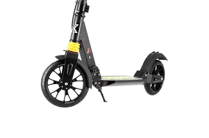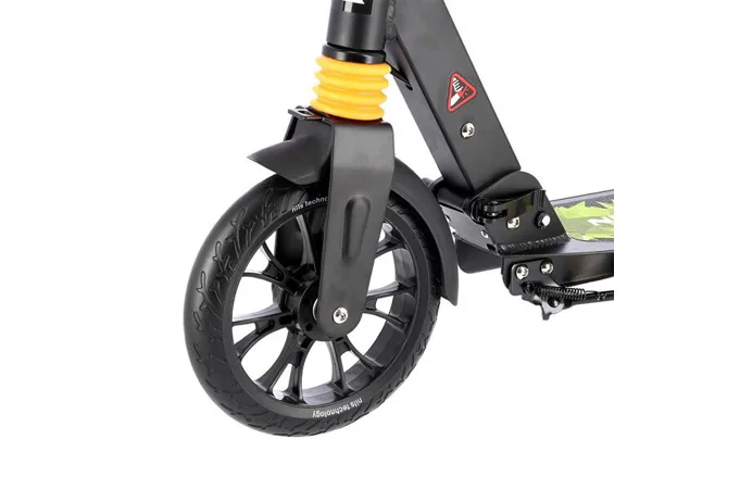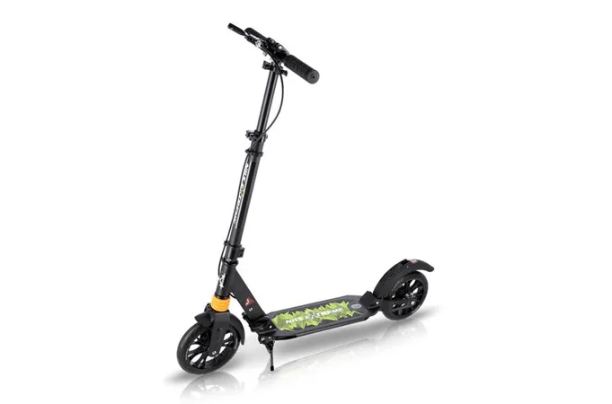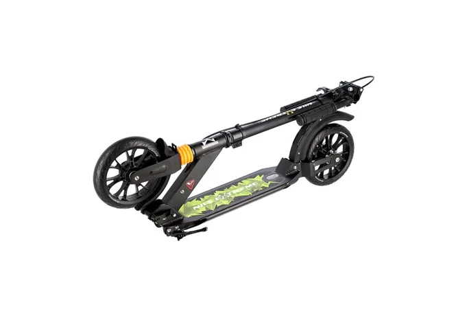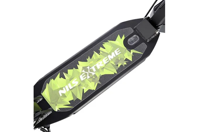 Skládací koloběžka NILS Extreme HL-688T je koloběžka určená pro celou rodinu. Charakteristickou vlastností koloběžky jsou kotoučová brzda a dva tlumiče – přední svislý a zadní vodorovný, zajišťující větší komfort během jízdy, minimalizují drncání a pohlcují otřesy. Díky tomu se produkt dobře osvědčí při přejíždění nerovných povrchů. Široký a dlouhý nášlap je pokrytý protiskluzovým gripem zajišťujícím správnou přilnavost boty. Nastavitelná řídítka (až do výše 106,5cm) umožňují přizpůsobit koloběžku k výšce dítěte nebo také zajišťují pohodlnou jízdu dospělým osobám. Zadní kolo je osazeno kotoučovou brzdou, která je ovládána páčkou z řídítek.