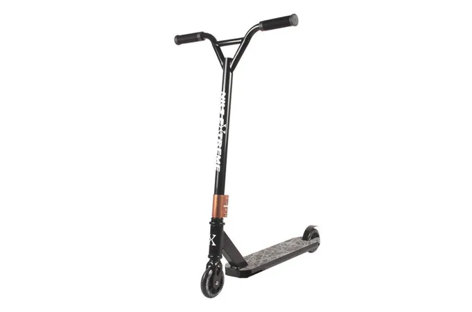 NILS Extreme HS104 je freestyle koloběžka s nosností 100 kg a je tak vhodná jak pro děti, tak pro dospělé. Konstrukce je vyrobena ze silné a trvanlivé oceli. Model HS104 je vhodný na asfalt a dlažbu. Kolečka o rozměru 100 x 24 mm jsou osazeny ložisky ABEC 9, bezpečnost zaručuje zadní přítlačná (blatník) brzda. NILS Extreme HS104 je díky malým, rychlým kolečkům, robustní, pevné konstrukci a řídítkům protáčejícím se o 360° určena k provádění triků.