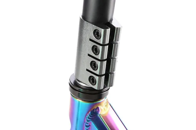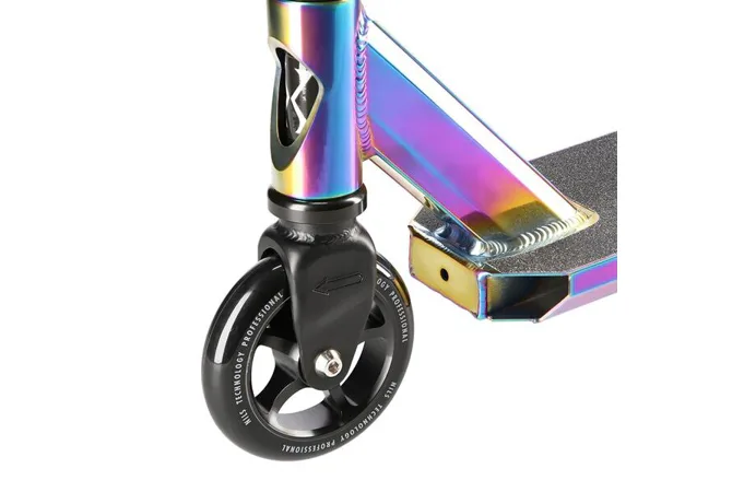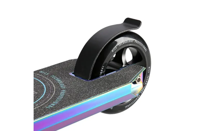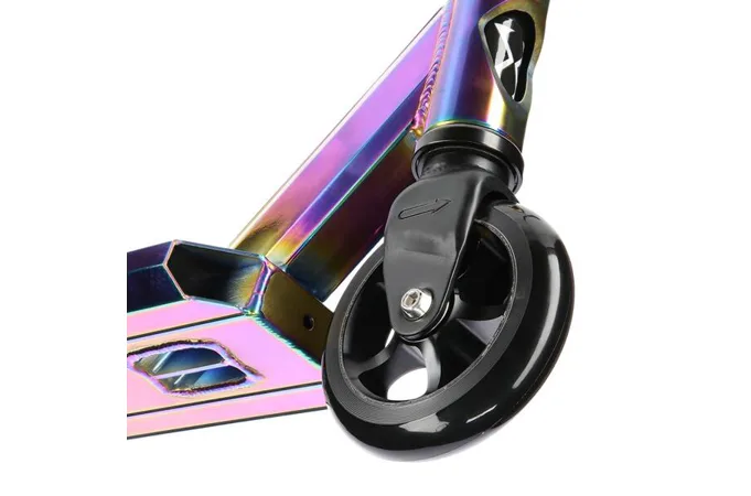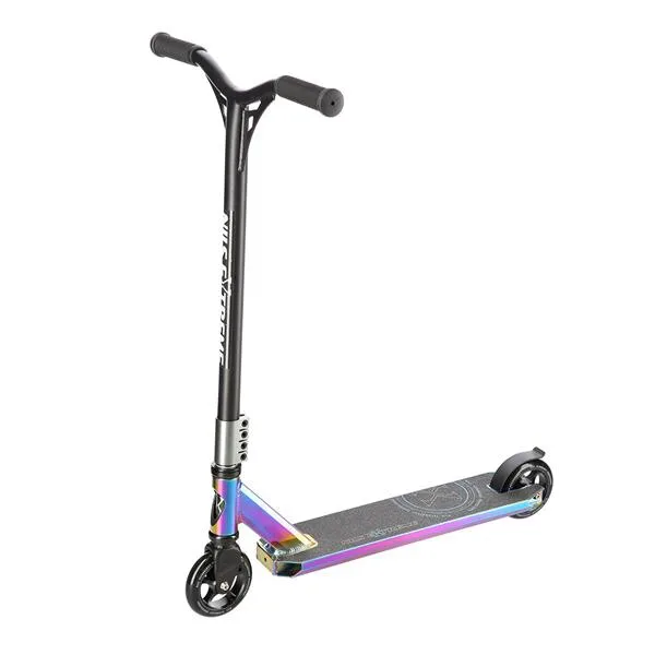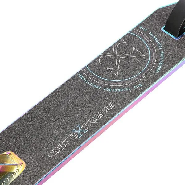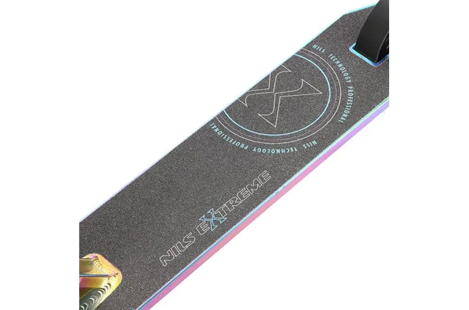NILS Extreme HS109 je freestyle koloběžka s nosností 100 kg a je tak vhodná jak pro děti, tak pro dospělé. Konstrukce je vyrobena ze silné a trvanlivé oceli. Model HS109 je vhodný na asfalt a dlažbu. Kolečka o rozměru 100 x 24 mm jsou osazena ložisky ABEC 9, bezpečnost zaručuje zadní přítlačná (blatník) brzda. NILS Extreme HS109 je díky malým, rychlým kolečkům, robustní, pevné konstrukci a řídítkům protáčejícím se o 360° určena k provádění triků. Řídítka jsou k ocelové, bezzávitové vidlici připevněny pomocí 4-šroubové svorky, lze je tak snadno vyměnit. Robustní deck má dvě příčky a tři komory. Gumové gripy pohlcují nežádoucí vibrace.