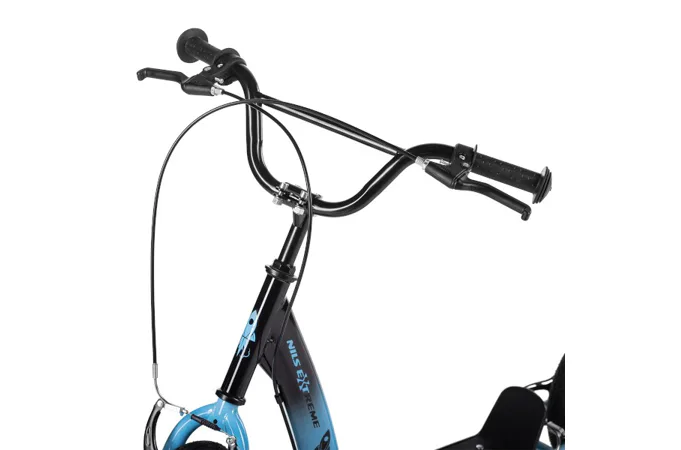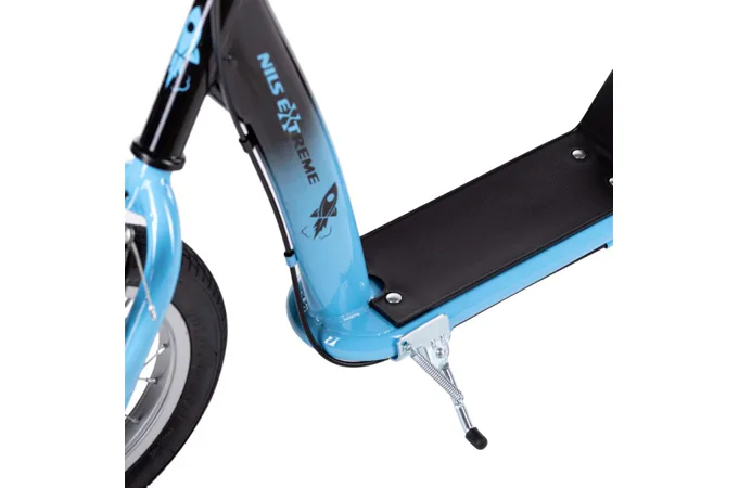 Koloběžka NILS Extreme WH113N má nosnost 80 kilogramů a je tak určená pro děti a dorost. Rám, vidlice a řídítka jsou vyrobeny z kvalitní oceli. 12", hliníkové ráfky jsou obuty pumpovanými pneumatikami, které zaručují vysoký jízdní komfort a snadné překonávání drobných nerovností. Model WH113N je tedy ideální volbou pro jízdu po asfaltových silnicích, dlážděných městských uličkách, ale i po lesních stezkách.