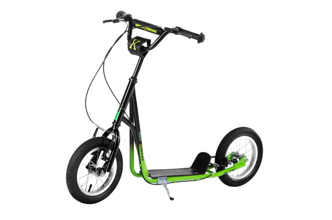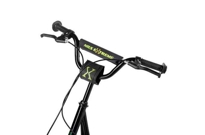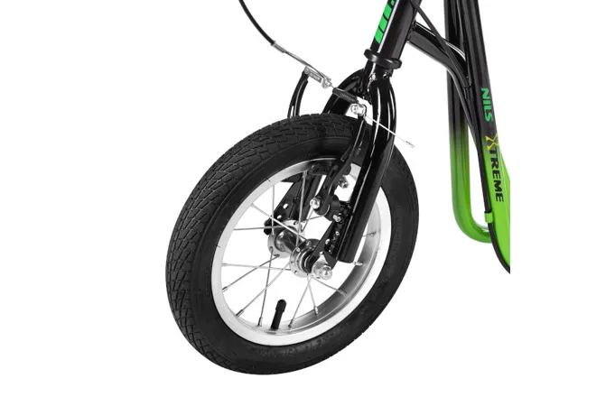 Koloběžka NILS Extreme WH117BN má nosnost 80 kilogramů a je tak určená pro děti a dorost. Rám, vidlice a řídítka jsou vyrobeny z kvalitní oceli. 12", hliníkové ráfky jsou obuty pumpovanými pneumatikami, které zaručují vysoký jízdní komfort a snadné překonávání drobných nerovností. Model WH117BN je tedy ideální volbou pro jízdu po asfaltových silnicích, dlážděných městských uličkách, ale i po lesních stezkách.WH117BN je opatřena přední a zadní brzdou typu "V-Brake", sklopným stojánkem a molitanovým chráničem na trubce řídítek. Gumové gripy zajišťují pevný a pohodlný úchop.