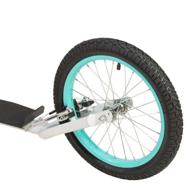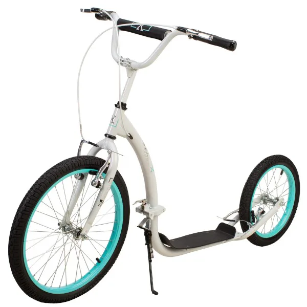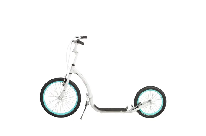 Díky nosnosti 100 kg si ji může užívat celá rodina. Rám je vyroben z kvalitní oceli, na ráfky jsou obuty pneumatiky s duší a pro maximální bezpečnost je koloběžka vybavena ocelovými brzdami typu "V-brake" a most řídítek je opatřen pěnovým návlekem. Tyto vlastnosti koloběžku přímo předurčují k použití na asfaltu, dlažbě, ale i na štěrku a nezpevněných stezkách.
