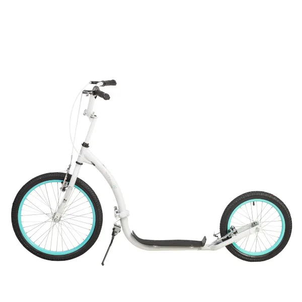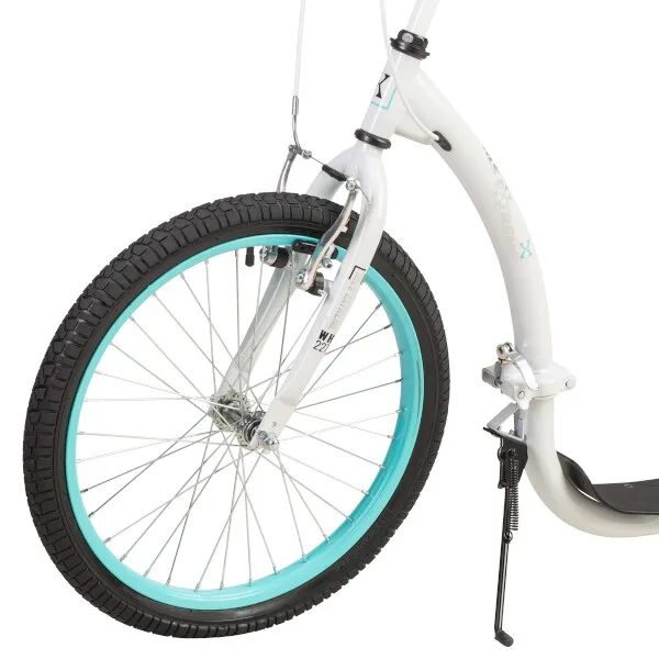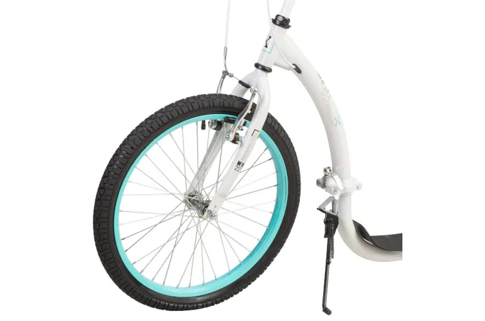 Pro vyšší jízdní komfort jsou pohodlné gripy fixovány objímkami s šroubem, takže se nebudou protáčet, díky tomu poskytují jistotou v řízení. Integrovaný stojánek pak usnadňuje parkování koloběžky a 20" velké přední kolo zlepšuje ovladatelnost a prostupnost terénem.