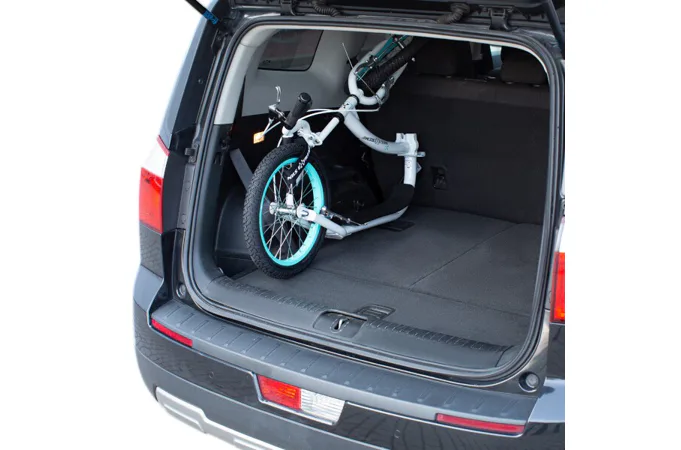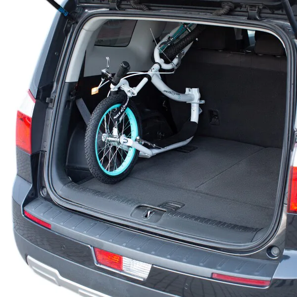 Velkou předností modelu WH227F je skládací mechanizmus na "krku" koloběžky. Po uvolnění páčky rychloupínáku konstrukci jednoduše překlopíte, pomocí přibaleného řemínku zafixujete zadní kolo k řídítkům a koloběžku si můžete vzít například do vlaku anebo uložit do kufru svého vozu.