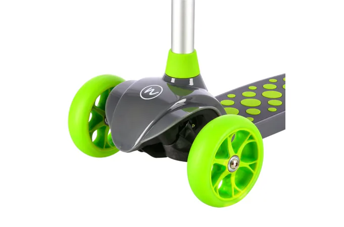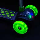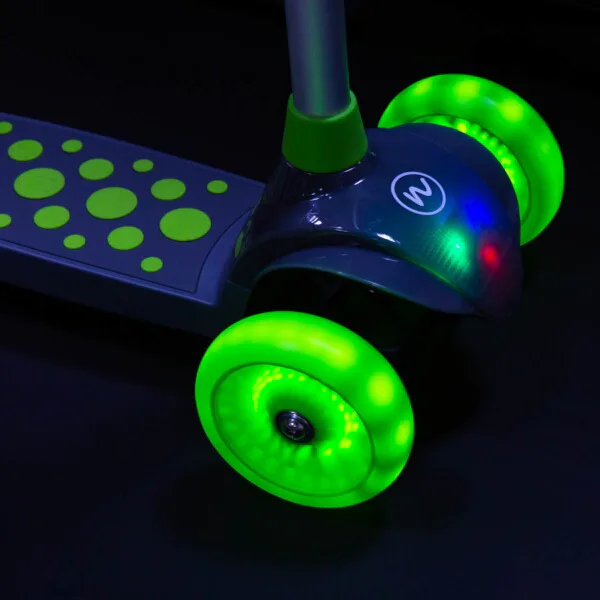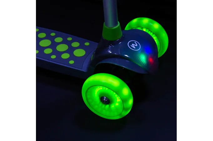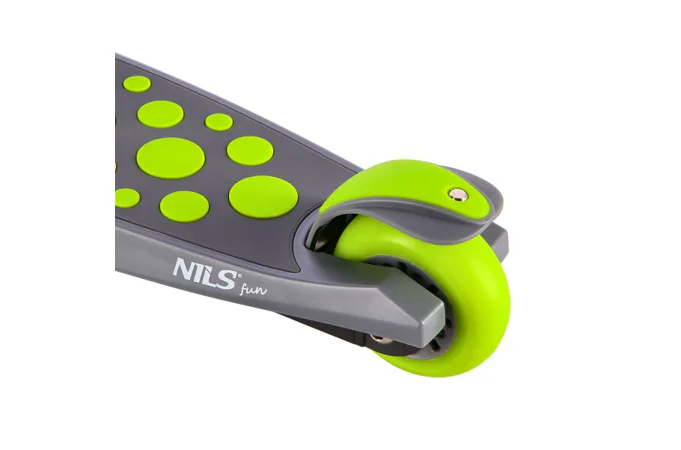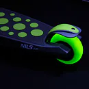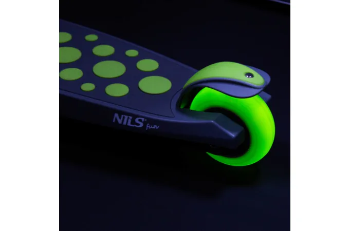 Koloběžka NILS Fun HLB02 má kolečka osazena svítícími LED diodami, které slouží jako zajímavý, vizuální prvek, zvyšují zájem dětí a v neposlední řadě zvyšují viditelnost koloběžky například za šera. Kolečka svítí automaticky během jejich otáčení.