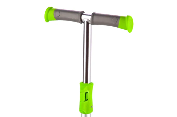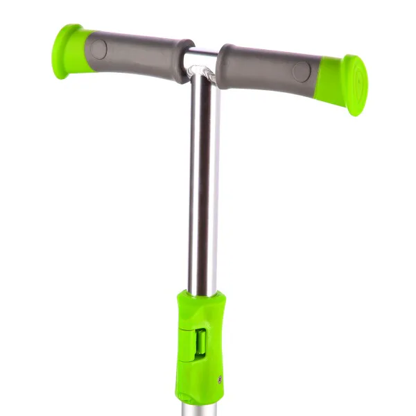 Gripy na řídítkách jsou vyrobeny z gumy pro jistý úchop. Konce gripů jsou opatřeny zarážkou, která zamezuje sesmyknutí dlaně z gripu a zároveň dlaň chrání, když dítě náhodou zavadí řídítkem o překážku - například o fasádu domu. Stupátko není polepeno klasickým griptapem, ale gumovou podložkou. Kolečka jsou osazeny ložisky ABEC 7 pro plynulou jízdu. Zadní blatník slouží jako nášlapná brzda pro bezpečné zastavení koloběžky.