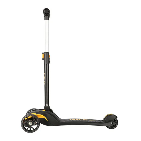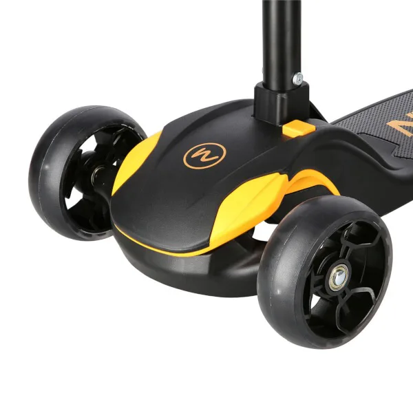 Přední kolečka jsou široká 40 milimetrů a zadní kolečko má šířku 50 milimetrů. Kolečka jsou osazeny ložisky ABEC 7 pro plynulou jízdu a navíc jsou vybavena svítícími LED diodami, které slouží jako zajímavý, vizuální prvek, zvyšují zájem dětí a v neposlední řadě zvyšují viditelnost koloběžky například za šera. Kolečka svítí automaticky během jejich otáčení. Zadní blatník slouží jako nášlapná brzda pro bezpečné zastavení koloběžky.