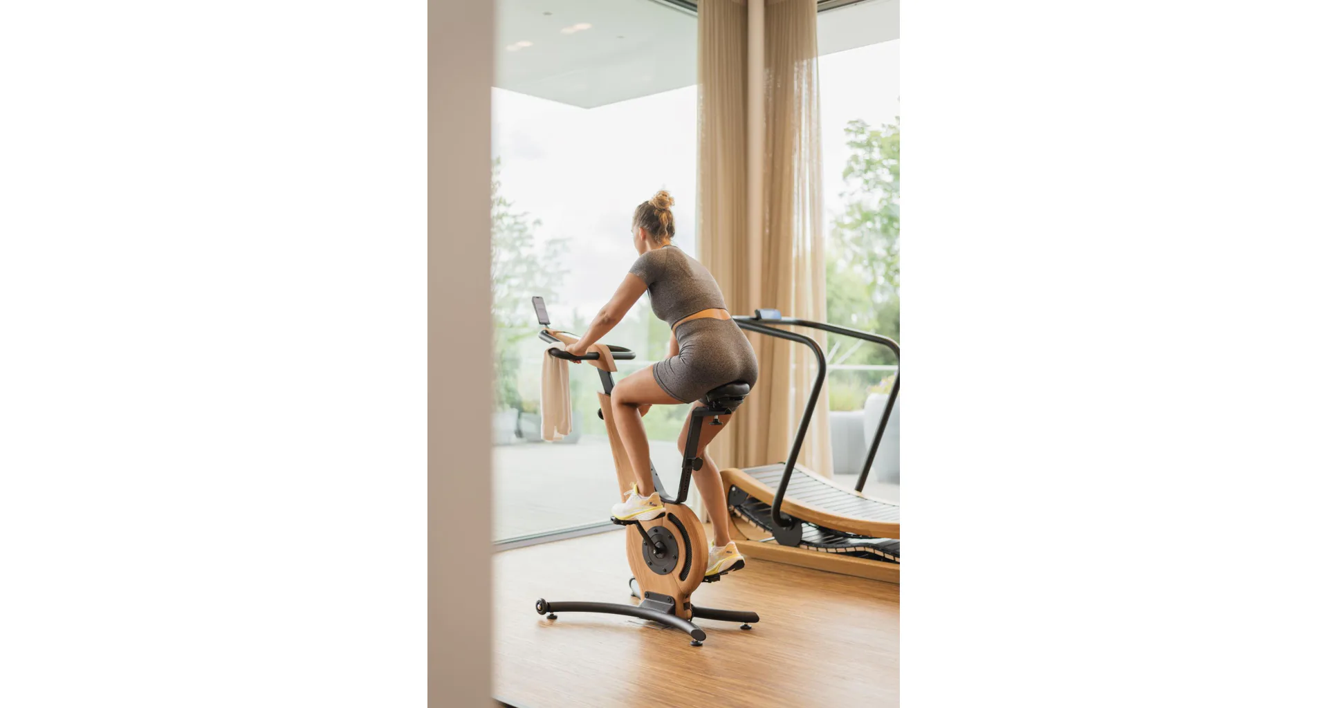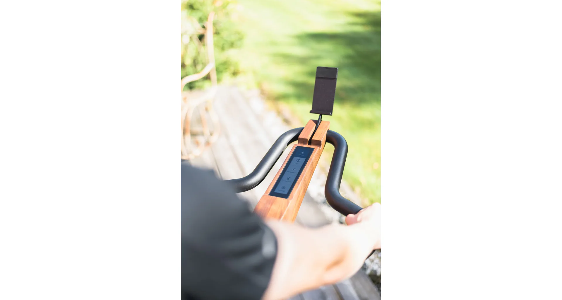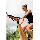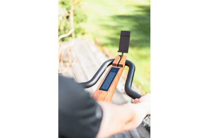 Pokud chcete během tréninku pozorovat své výsledky, můžete využít tréninkového počítače nebo jej připojit přes Bluetooth k aplikaci NOHrD ve svém zařízení, které zacvaknete do praktického držáku tabletu, abyste mohli bez problému sledovat svá data. Měření tepu lze přes hrudní pás s bluetooth připojením - pás není součást balení.