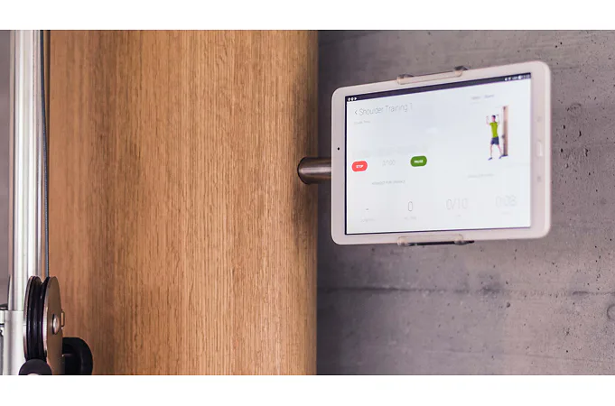 SlimBeam lze použít s interaktivní cvičební aplikací SlimBeam pro tablety Android. Elektronický tréninkový systém lze namontovat do rámu SlimBeam na boční straně stroje, k tomu je potřeba trenažer demontovat. Díky tomuto elektronickému systému propojíte třenažér tabletem a zdarma si do tabletu stahnete cvičební aplikaci. Balení obsahuje univerzální držák tabletu pro velikosti až 13 palců (tablet není součátstí balení).