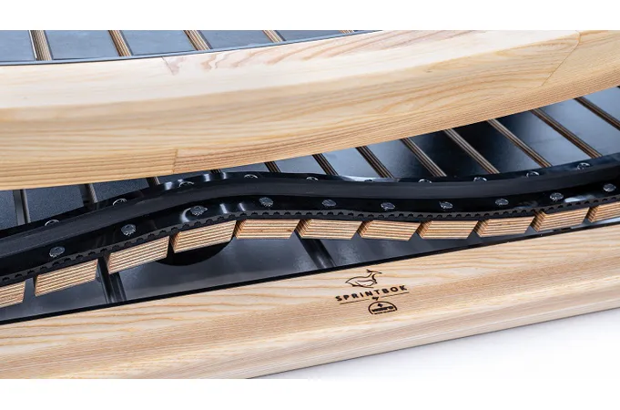 Díky zakřivenému tvaru poskytuje Sprintbok velmi přirozený pocit při běhání, jako ve skutečném terénu a navíc je velmi šetrný ke kloubům. Lamely jsou vyrobeny z kaučuku, které tlumí vibrace a zajišťují tichý zvuk při používání.