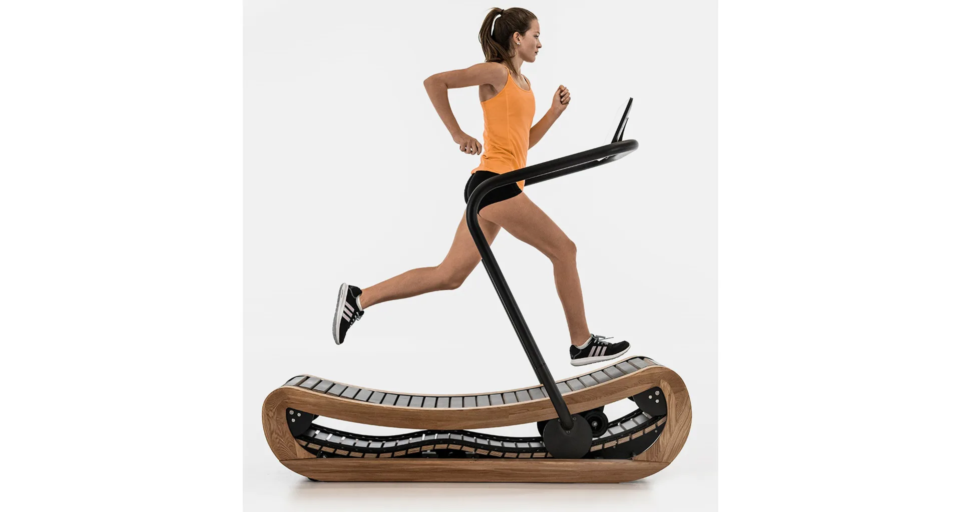 Tento luxusní bezmotorový běžecký pás NOHrD Sprintbok se pyšní použitím nejlepších materiálů. Robustný a odolný trenažér je vyroben z kvalitního dřeva a oceli, to zajišťuje komfortní zážitek při cvičení na prostorné běžecké ploše (45 x 160 cm). Díky svému zpracování skvěle poslouží jak v domácím, tak i plně komerčním prostředí.