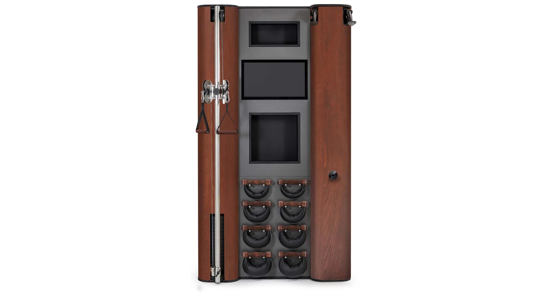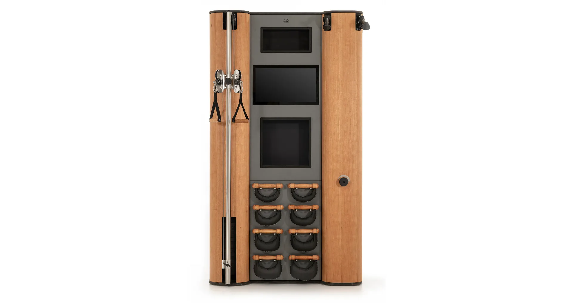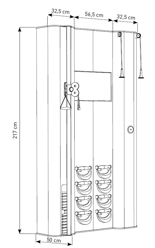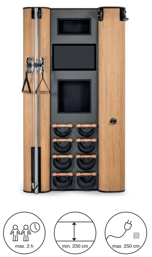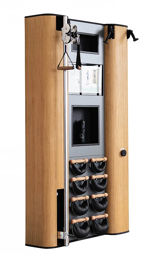 Exkluzivní multifunkční stěna NOHrD Wall Compact se může pochlubit svým moderním a elegantním vzhledem, je vyrobena z masivního dřeva různých druhů a skvěle se hodí do každého interiéru. Stěna poskytuje tréninky celého těla, jak silové tak vytrvalostní. Wall Compact obsahuje výškově nastavitelný kladkový stroj, Ski-erg a čtyři páry ručních závaží SwingBells. Wall Compact mohou používat i dva lidé najednou.Stěna je ideální jak do domácích, ale i plně komerčních podmínek!