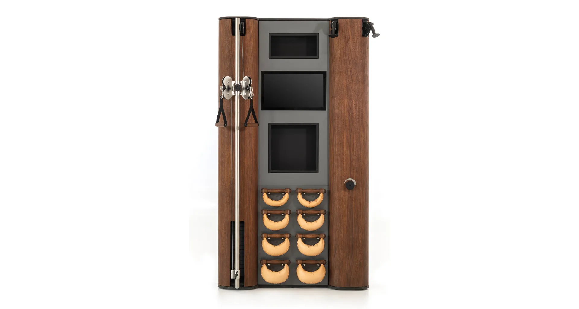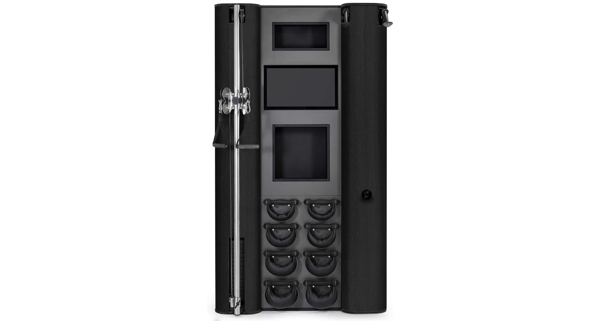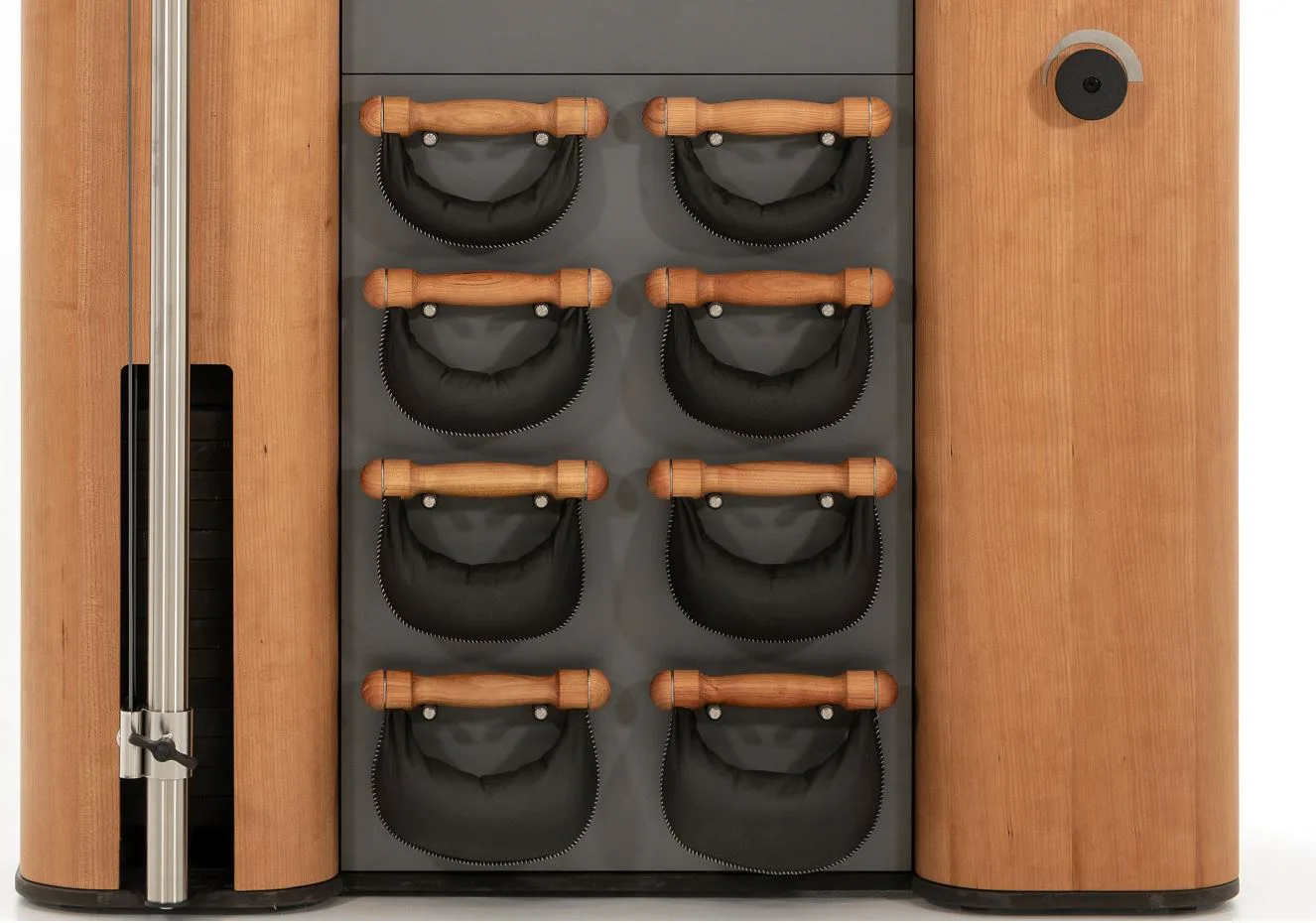 Exkluzivní multifunkční stěna NOHrD Wall Compact se může pochlubit svým moderním a elegantním vzhledem, je vyrobena z masivního dřeva různých druhů a skvěle se hodí do každého interiéru. Stěna poskytuje tréninky celého těla, jak silové tak vytrvalostní. Wall Compact obsahuje výškově nastavitelný kladkový stroj, Ski-erg a čtyři páry ručních závaží SwingBells. Wall Compact mohou používat i dva lidé najednou.Stěna je ideální jak do domácích, ale i plně komerčních podmínek!