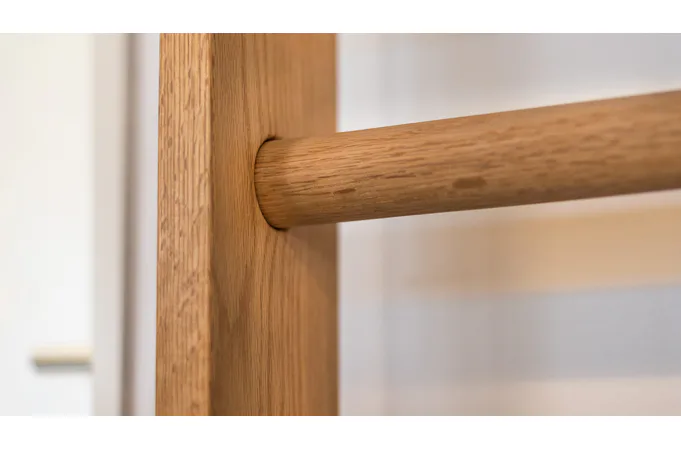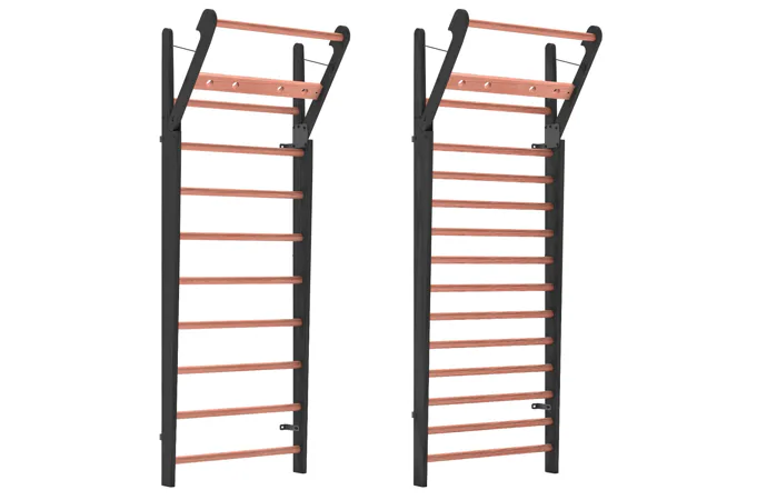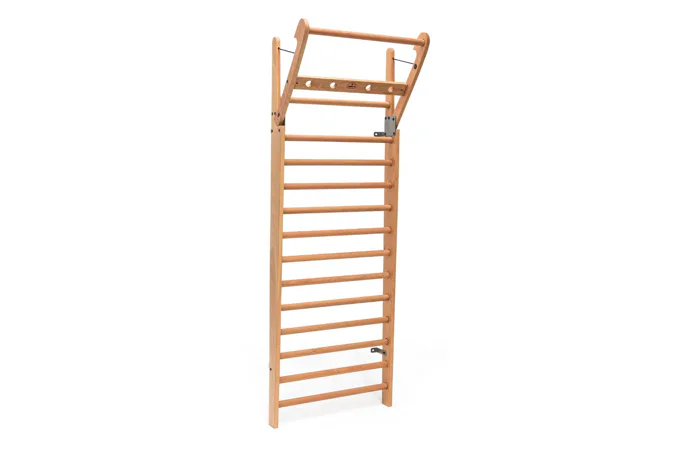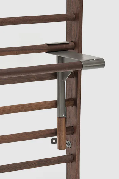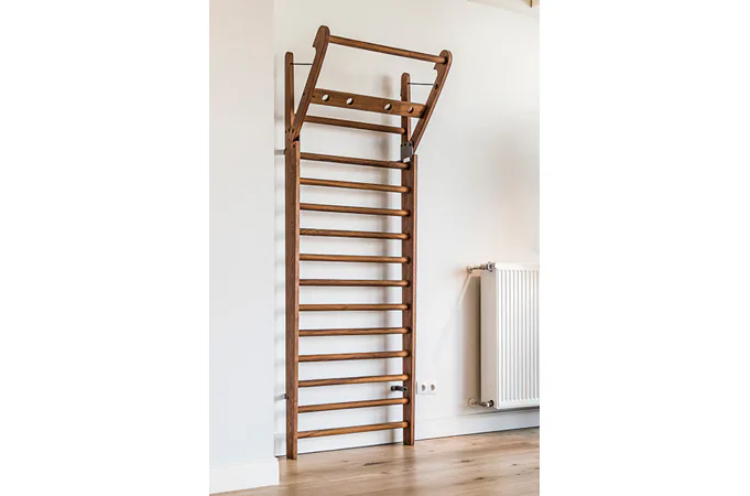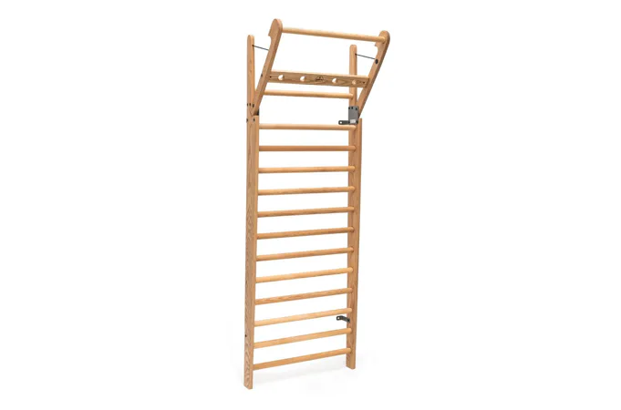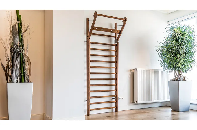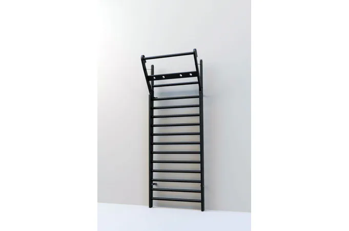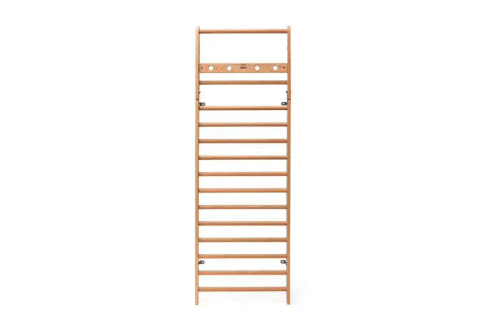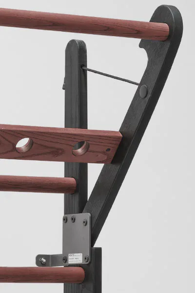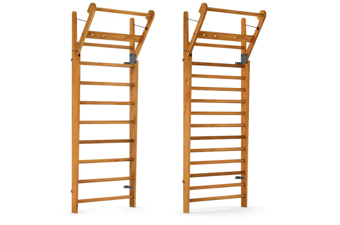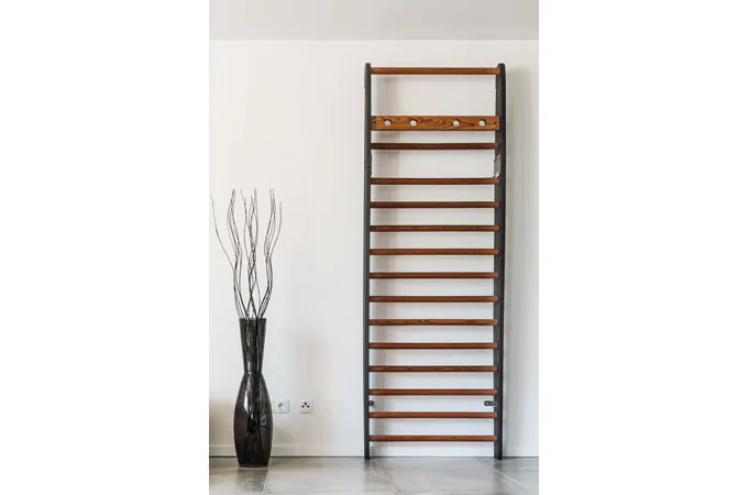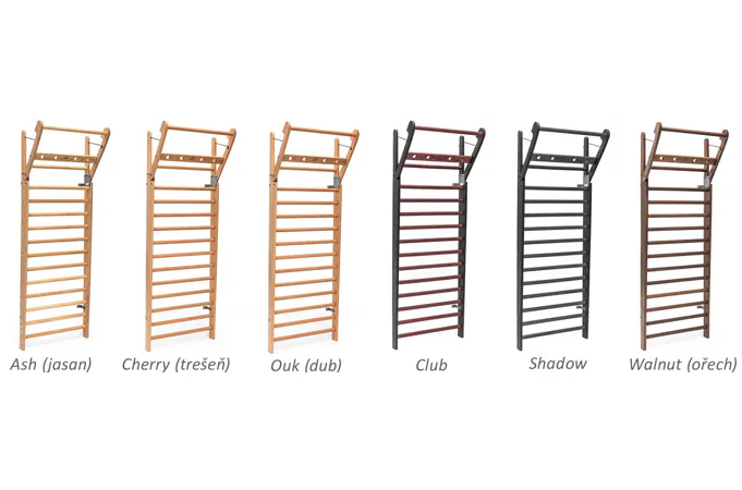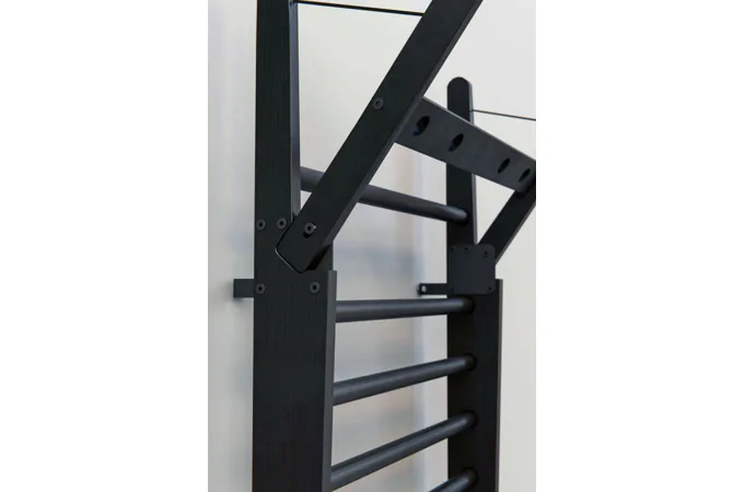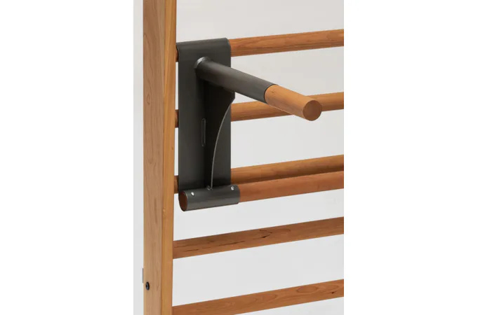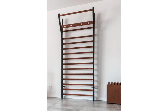 Exkluzivní žebřiny WallBars 230 x 79 cm od luxusní značky NOHrD jsou vyrobeny z kvalitního masivního dřeva různých druhů. Specialita žebřin je výklopná integrovaná hrazda v horní části. WallBars jsou velice kvalitní a odolné, vhodné pro domácí i komerční použití. Hloubka bočnice je 13 cm