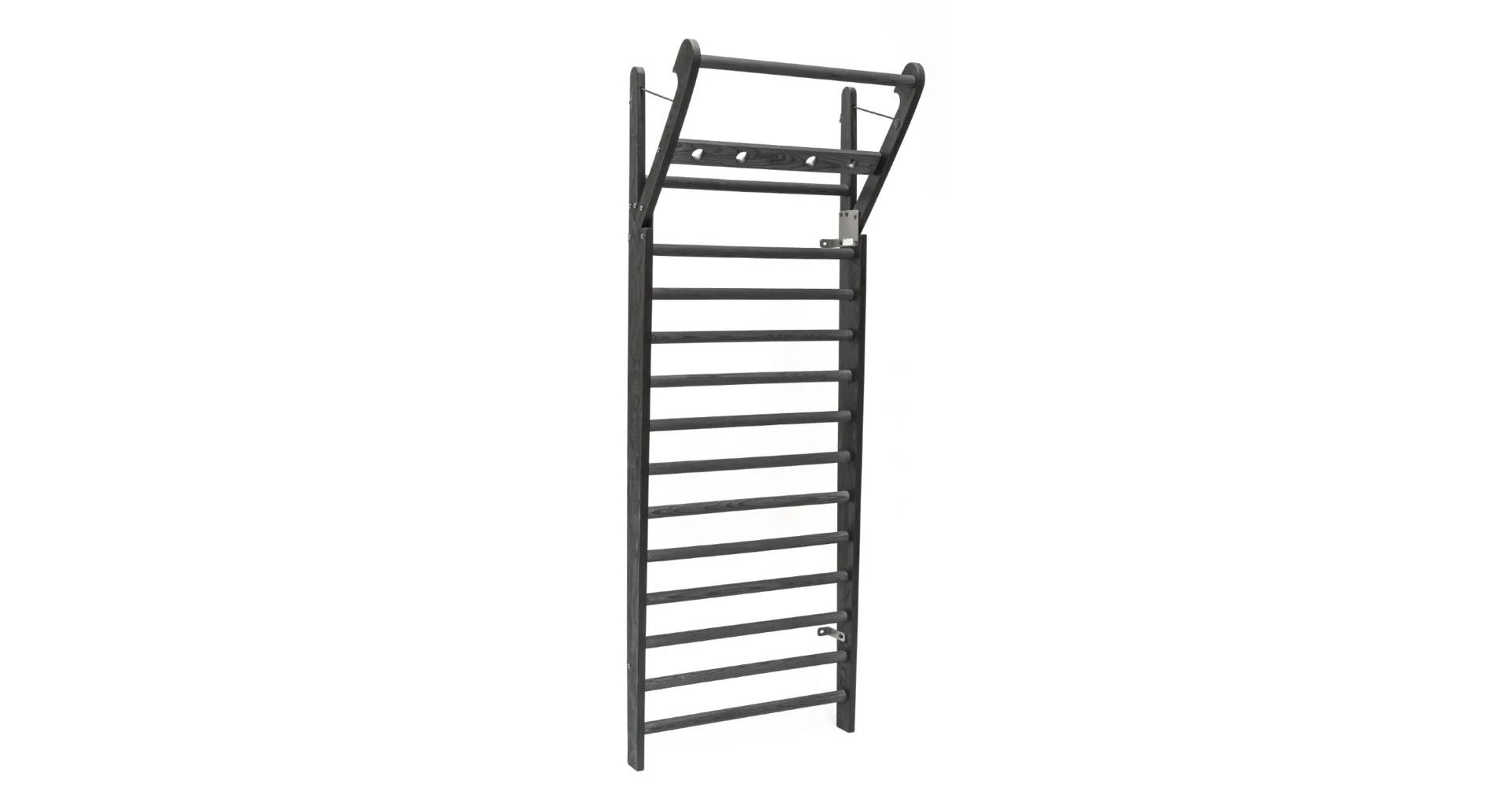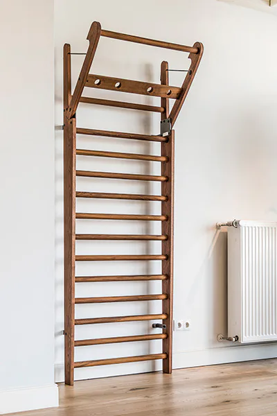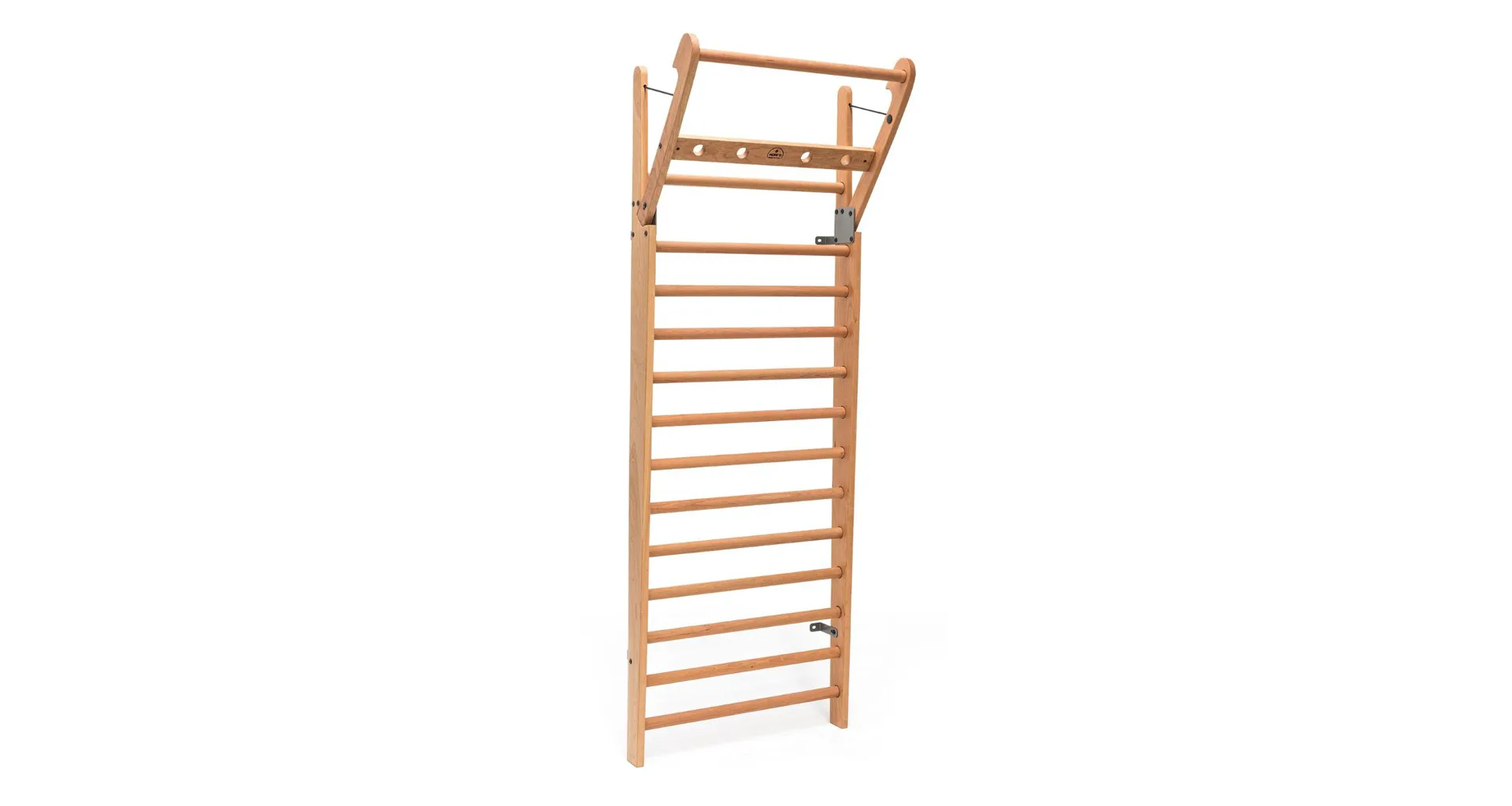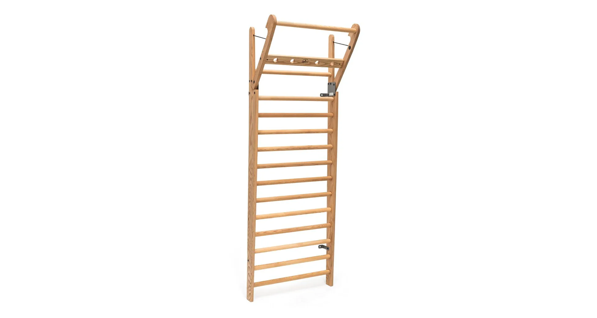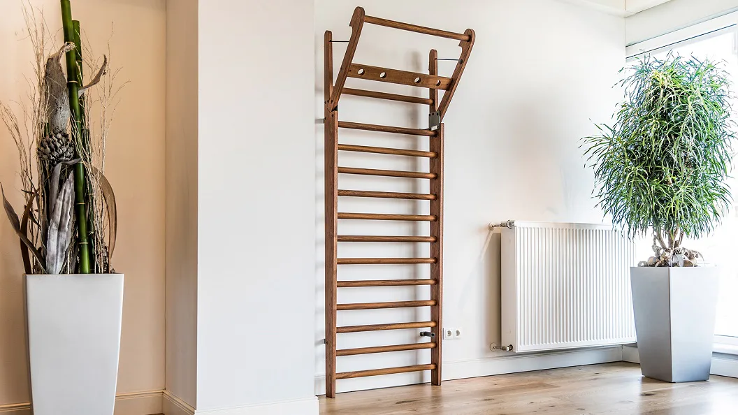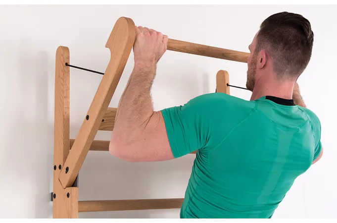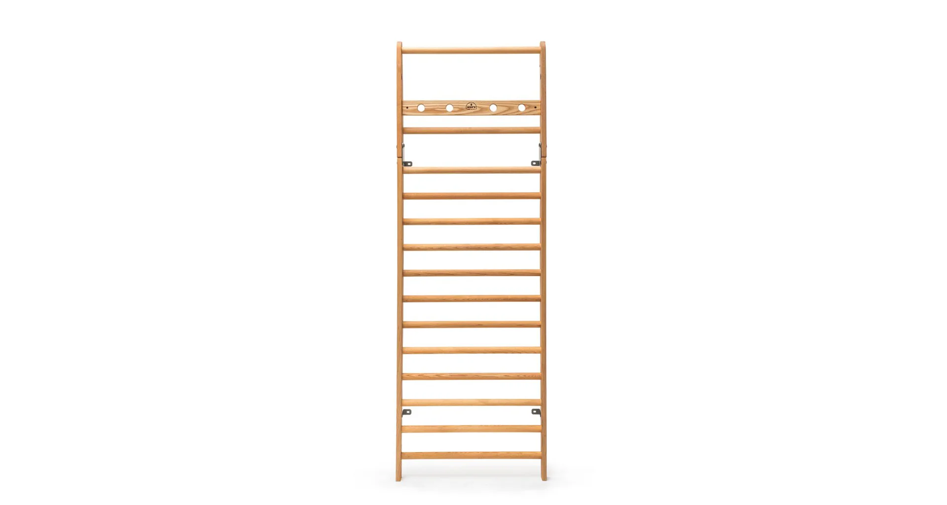 Exkluzivní žebřiny WallBars 230 x 79 cm od luxusní značky NOHrD jsou vyrobeny z kvalitního masivního dřeva různých druhů. Specialita žebřin je výklopná integrovaná hrazda v horní části. WallBars jsou velice kvalitní a odolné, vhodné pro domácí i komerční použití. Hloubka bočnice je 13 cm