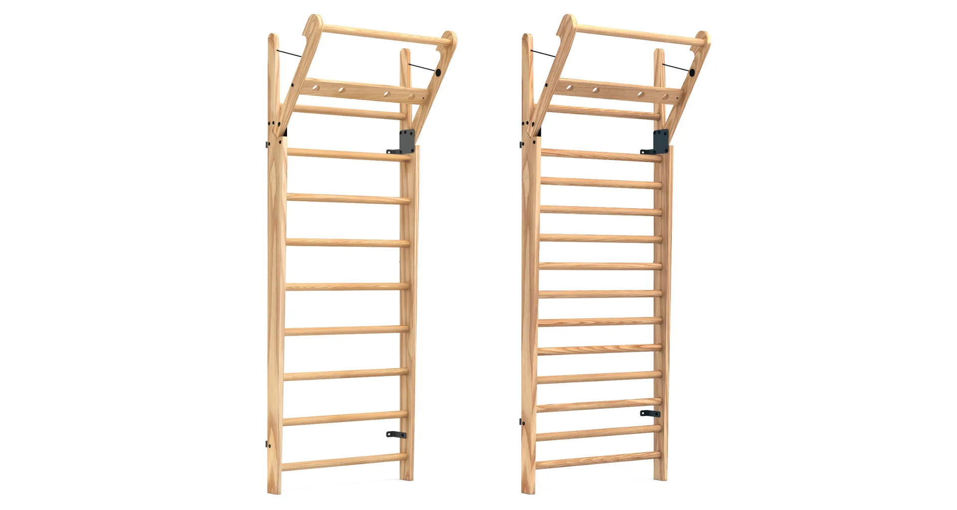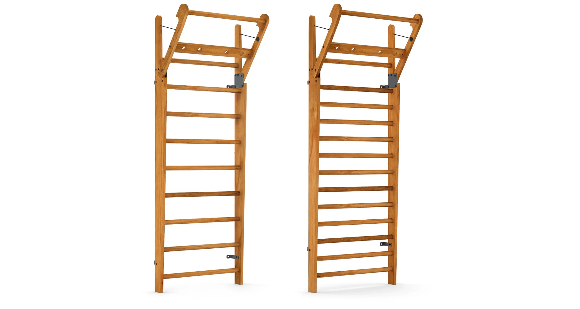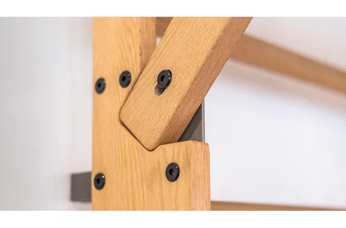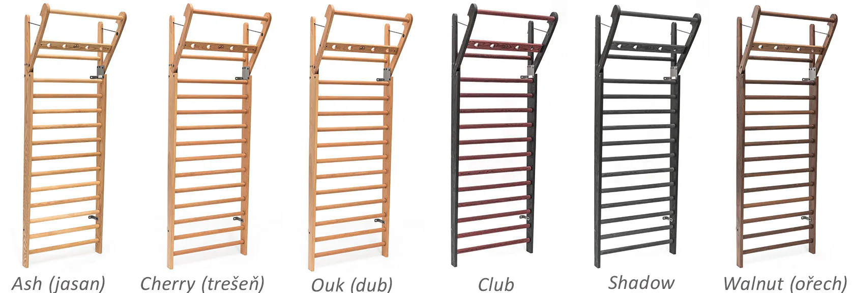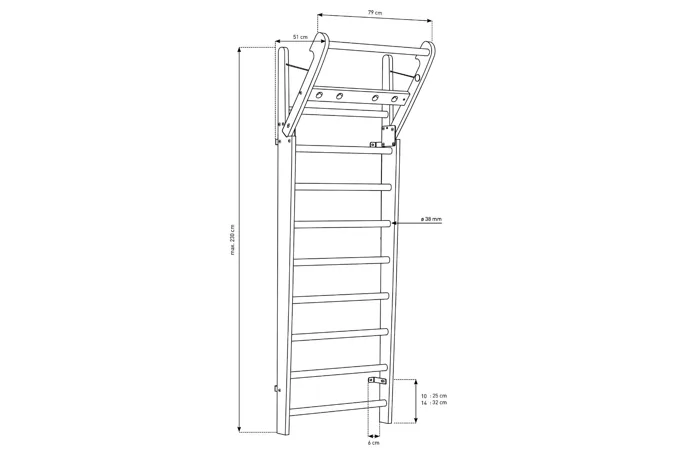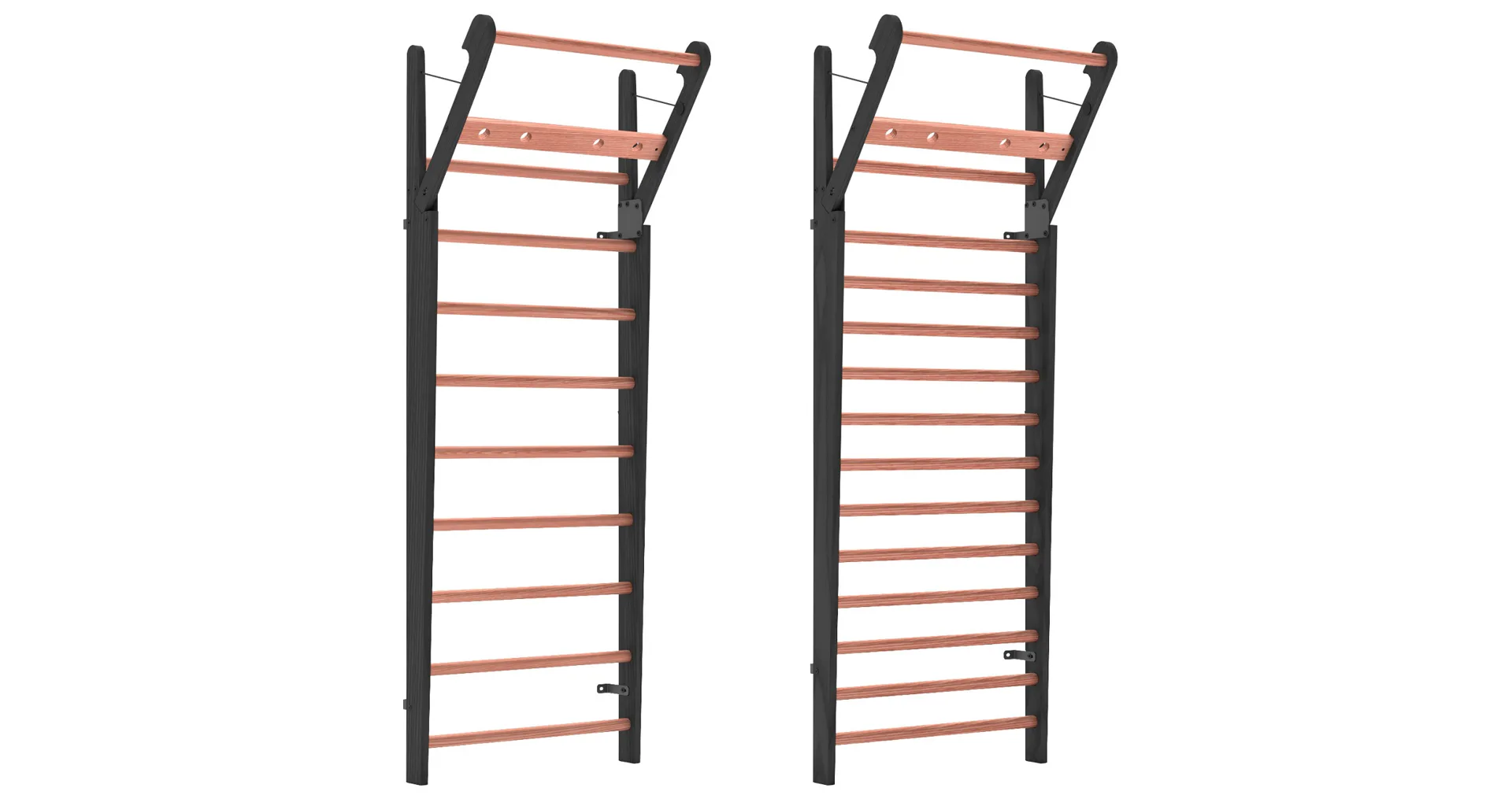 Exkluzivní žebřiny WallBars 230 x 79 cm od luxusní značky NOHrD jsou vyrobeny z kvalitního masivního dřeva různých druhů. Specialita žebřin je výklopná integrovaná hrazda v horní části. WallBars jsou velice kvalitní a odolné, vhodné pro domácí i komerční použití. Hloubka bočnice je 13 cm