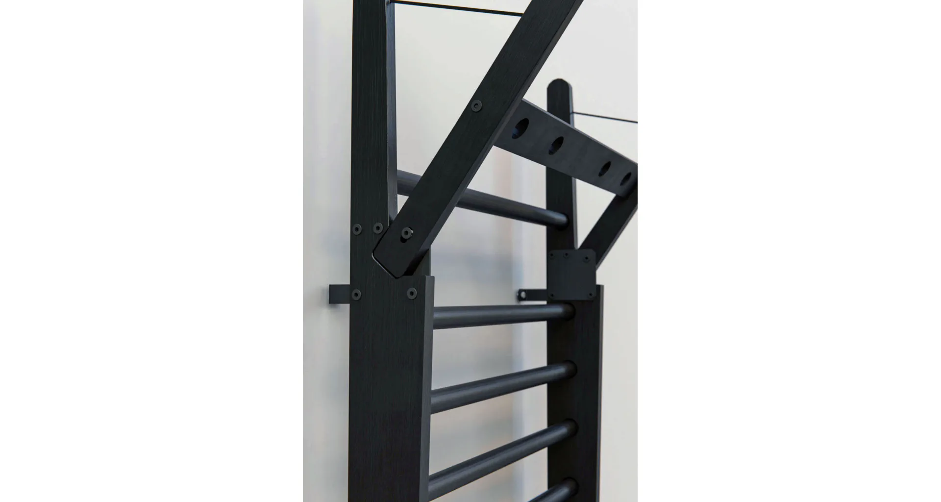 WALLBars se uchycují ke zdi kotevními šrouby, které jsou součástí balení. Montáž, kotvení žebřin a nosných prvků si zákazník zajišťuje sám.