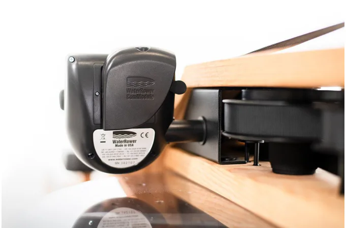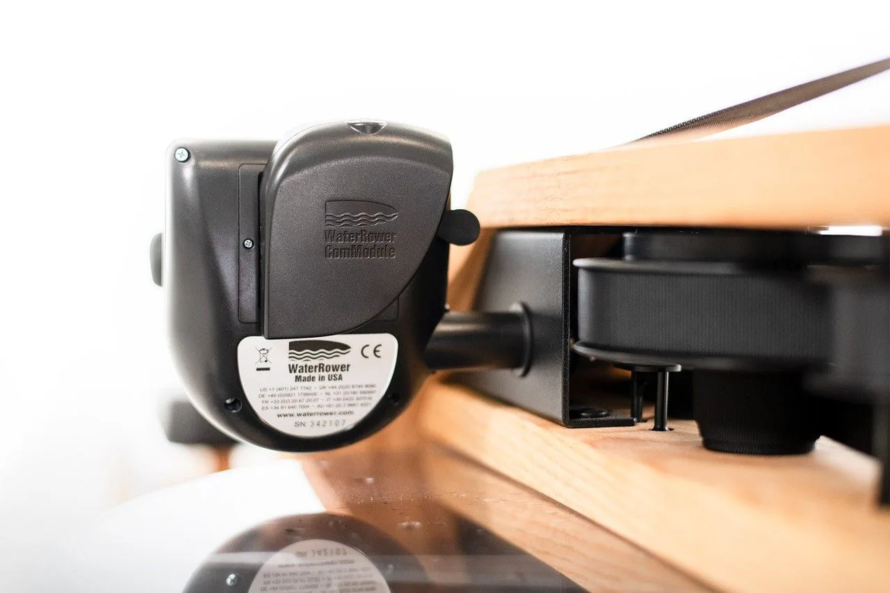 WaterRower ComModule je chytré příslušenství podporující Bluetooth®, které lze přidat k zadní části stávajícího monitoru S4. To vám umožní připojení WaterRower k aplikacím vyvinutým třetími stranami prostřednictvím zařízení Android nebo iOS (není součástí). ComModule je zapojen do zadní části standardního monitoru S4 a má dobíjecí lithiovou baterii.