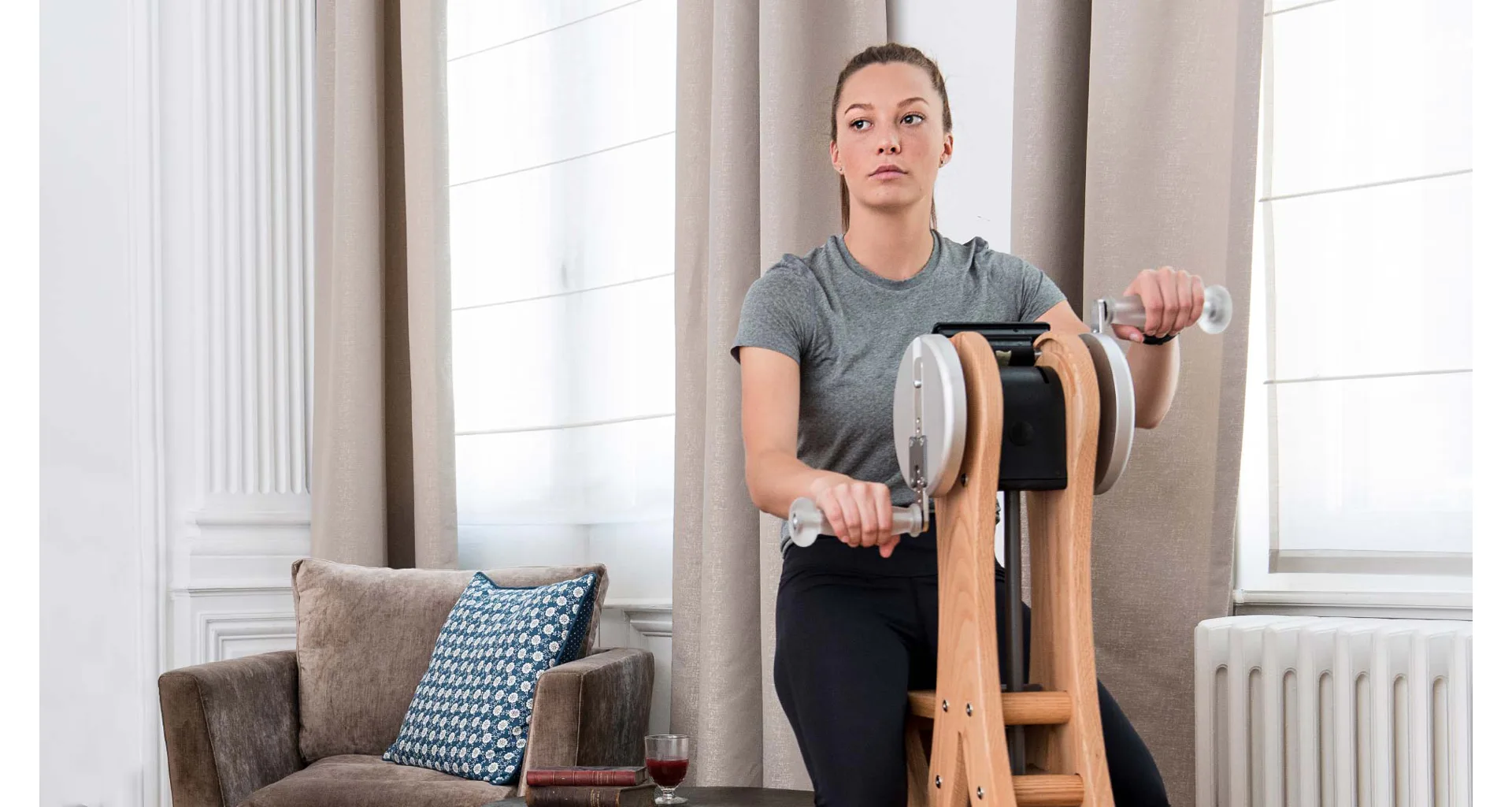 Jádrem celého stroje je nádrž s vodou, ve které se vytváří odpor, ten si každý reguluje sám dle intenzity "šlapání". Tento atypický posilovací stroj je inspirován jachtingem a představuje pohyb jako při plachtění. Cvičit na stroji se dá v sedě, i ve stoje a díky nastavitelnému sedlu a tréninkových klik se přizpůsobí každému. Obsluha dotykového monitoru je možná z obou stran. Monitor nabízí několik tréninkových programů.
