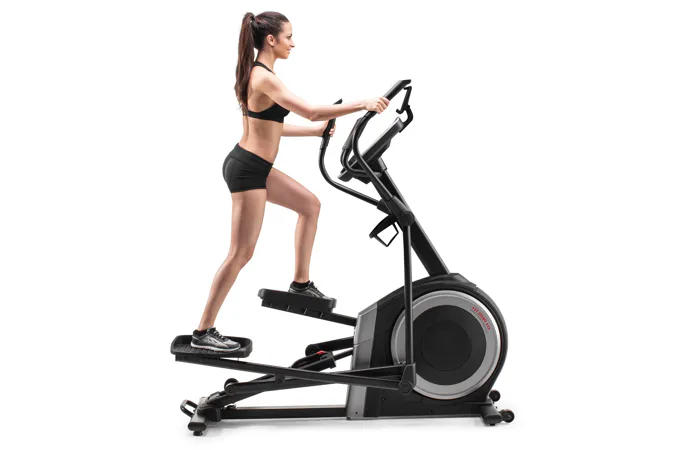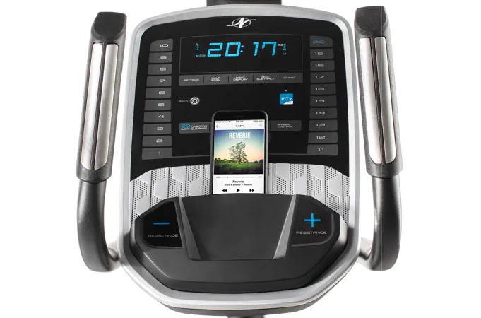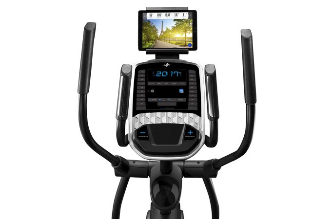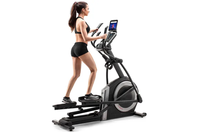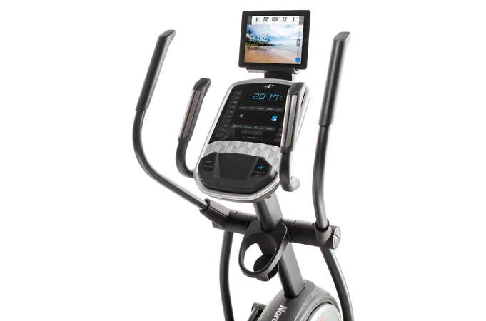 Eliptický trenažér NORDICTRACK C 5.5 je robustní cross se setrvačníkem v přední části stroje a možností ručbního nastavení sklonu pojezdu.