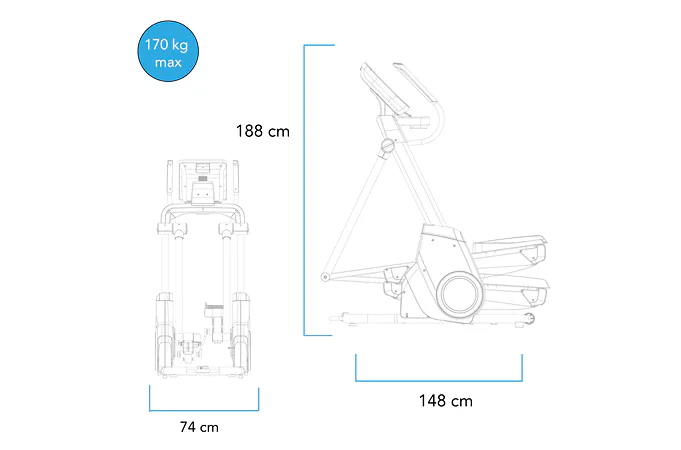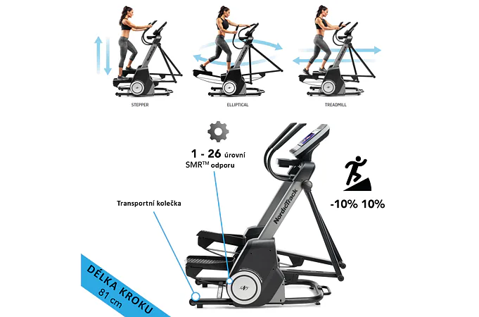 Specifický krok je dlouhý od 32 do 81 cm a je pouze na vás jaký pohyb si zvolíte. Všechny kloubní spoje a šlapací střed je osazen průmyslovými ložisky + plochý řemen s dopínací kladkou garantuje tichý chod, bezúdržbový provoz převodového mechanismu a dlouhodobou životnost.