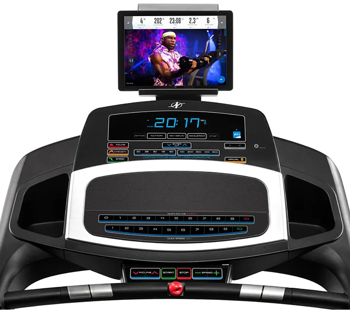 Počítač vyobrazuje na prehľadnom 5" LCD displejom základné hodnoty - rýchlosť, čas, vzdialenosť, tep srdca a spálené kalórie. Ďalej oceníte integrovaný držiak na tablet aj na fľašu, je možné zložiť a transportné kolieska vám umožní presunúť trenažér kamkoľvek budete potrebovať.