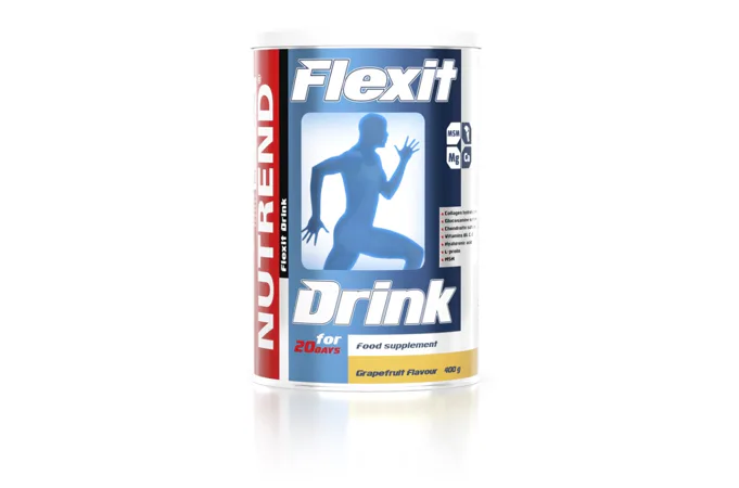 Flexit Drink obsahuje glukosamin sulfát, chondrotin sulfát, kolagenní bílkoviny a peptidy, aminokyseliny, MSM, kyselinu hyaluronovou. Najdeme zde také vápník, hořčík a vitamíny. Flexit Drink je určen pro doplnění a obohacení výživy při kloubních potížích, pro osoby s rizikem opotřebení a námahy kloubů (při sportu, nadváze), osoby se sníženou pohyblivostí nebo únavou kloubů.