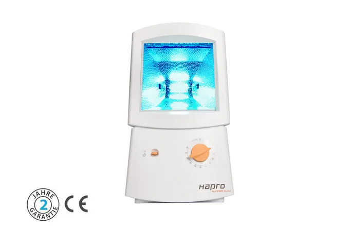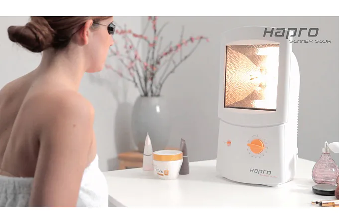 Obličejové solárium HAPRO SUMMERGLOW HB 404 je určeno pro domácí využití. Dodává slunce do vašeho domova i během zimních měsíců. Pomocí tohoto luxusního polotělového solária si můžete opalovat obličej, ramena a dekolt. Ideální pro každého, kdo chce mít zářivý úsměv po celý rok. Je vždy na dosah ruky a okamžitě připraveno k použití. Můžete se tak zdravě opalovat v pohodlí domova vestoje nebo vsedě, kdykoliv během dne.