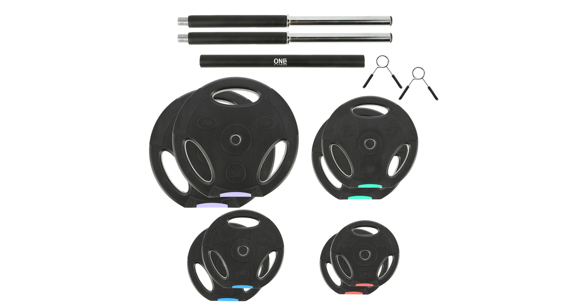 Kompletní sada obouruční, nakládací činky o celkové hmotnosti 42 kilogramů, to je ONE Fitness GSPO40. Nakládací činky patří ke klasickému vybavení každé domácí posilovny. Kotouče jsou vyrobeny z tvrdého plastu, který je vyplněn cementem. Trny jsou hladké o průměru 25,4 milimetrů a kotouče jsou proti posunutí jištěny pružinovými uzávěry.Sada obsahuje 1 nakládací osu, 2 uzávěry a 8 kotoučů různých vah.
