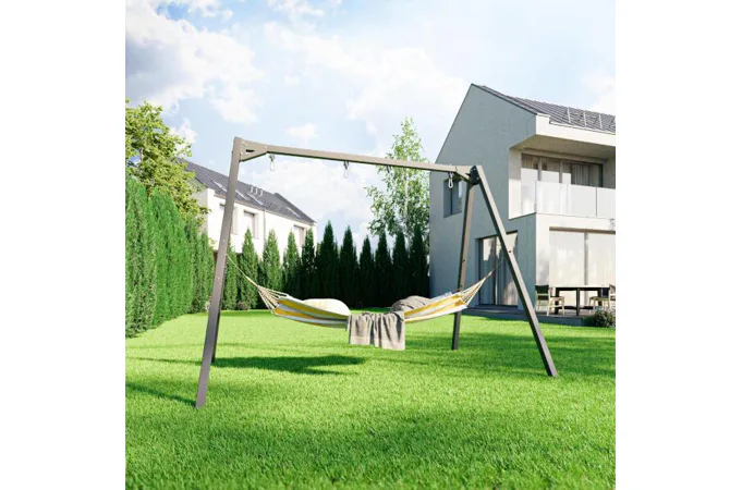 Součástí rámů houpaček jsou i 2 nástavce, které umožňují použít rám k zavěšení houpací sítě. Díky snadné montáži a demontáži závěsů můžete houpačky kdykoli vyjmout a zavěsit houpací síť, čímž se dětské hřiště promění v relaxační zónu - ideální například ve chvíli, kdy se děti již chystají ke spánku a vy jim chcete večer poskytnout chvíle odpočinku. Na tám lze také zavěsit další vybavení jako je boxovací pytel, gymnastické kruhy, nebo lano na šplh.