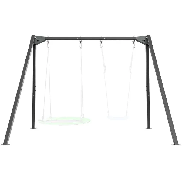 Dvojitá houpačka MO-013 má 2 páry závěsů a tak lze na rám zavěsit 2 houpačky, což vám dává spoustu možností. V závislosti na vašich potřebách a preferencích můžete nainstalovat jakýkoli typ houpačky - tradiční s plastovým sedátkem, dřevěnou desku, kruhovou houpačku, houpačku s rámem pro nejmenší děti nebo brazilské křeslo pro vlastní relaxaci. Je také možné využít větší rozteče pro jednu velkou houpačku - do více než 3 m širokého rámu se vejde například čapí hnízdo nebo houpací lavice pro více osob. Maximální nosnost houpačky MO-013 je 200 kg, takže konstrukci může využívat celá rodina nebo skupina malých hostů najednou.