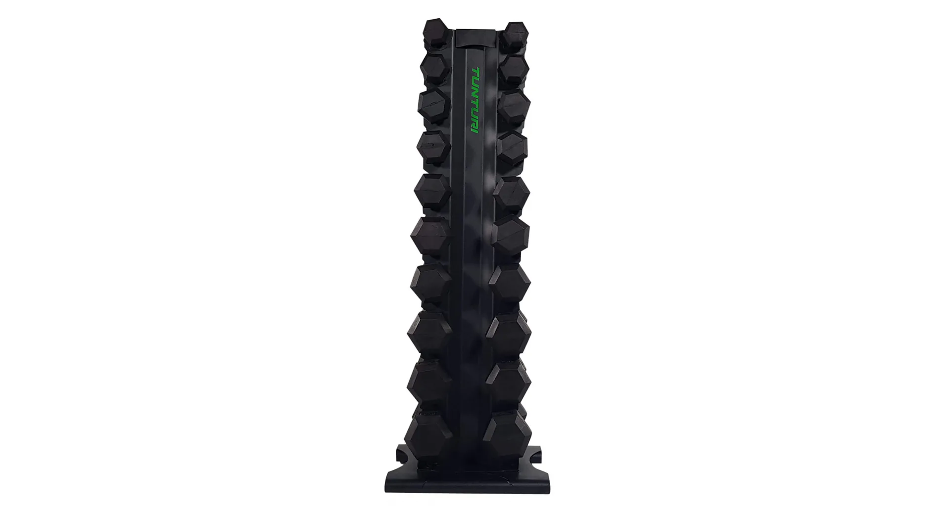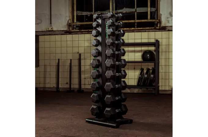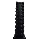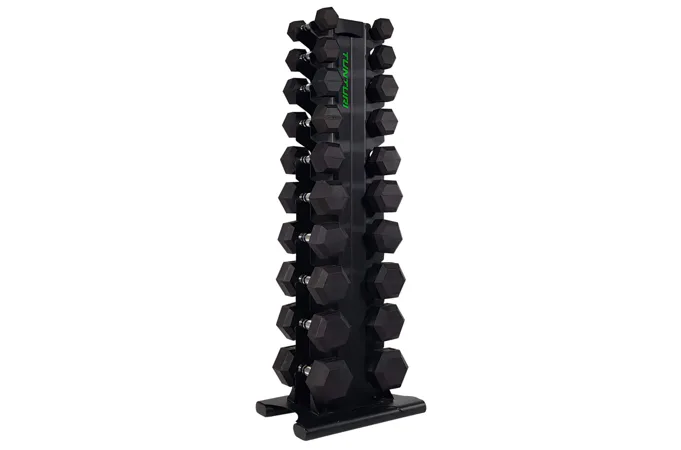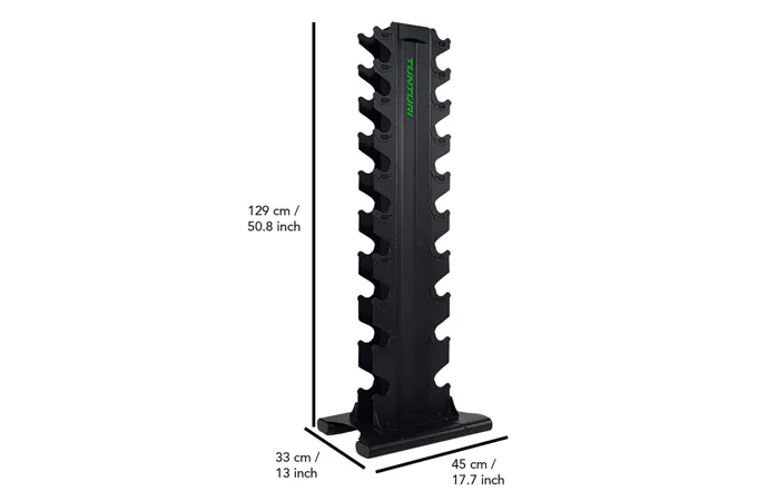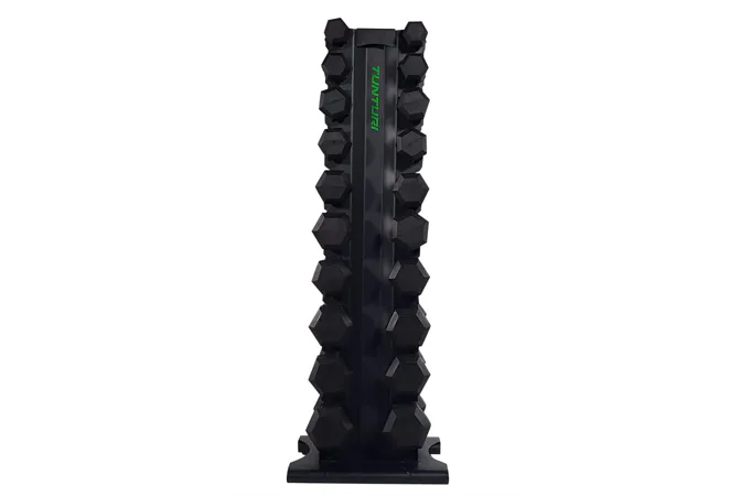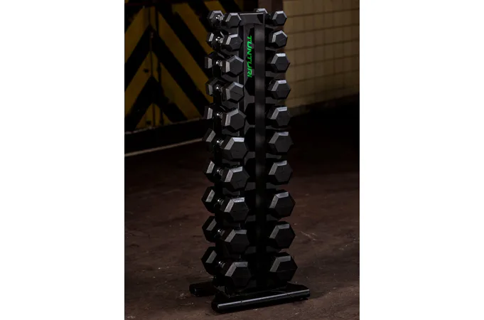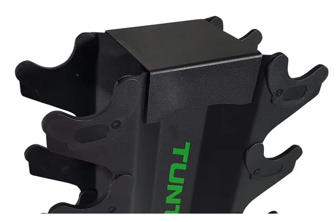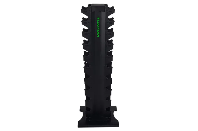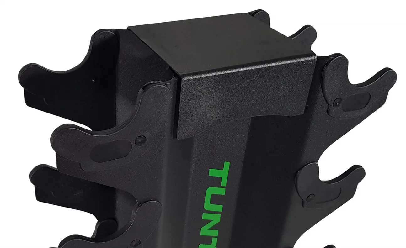 TUNTURI Pro Tower je stojan pro ukládání jednoručních činek určený pro domácí i komerční posilovny. Robustní ocelová konstrukce má kvalitní povrchovou úpravu vypalovaným lakem. Stojan nabízí úložný prostor pro 10 párů jednoručních činek.