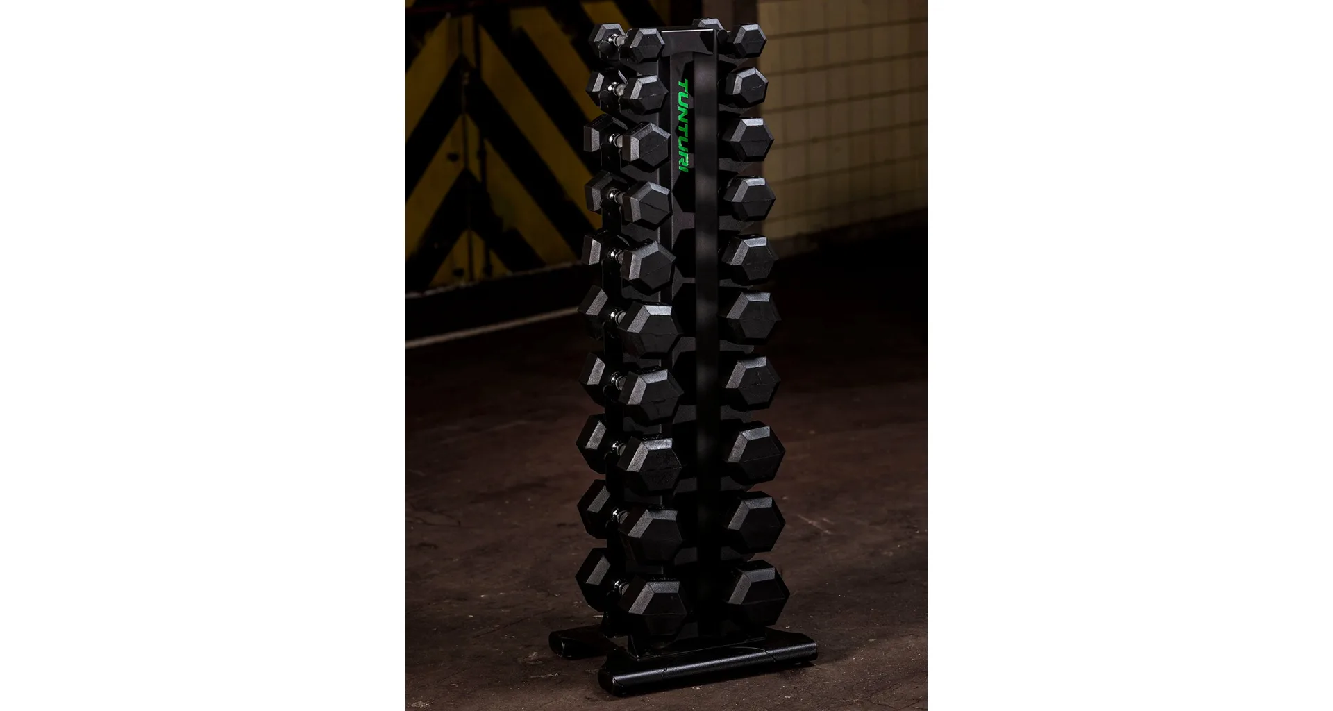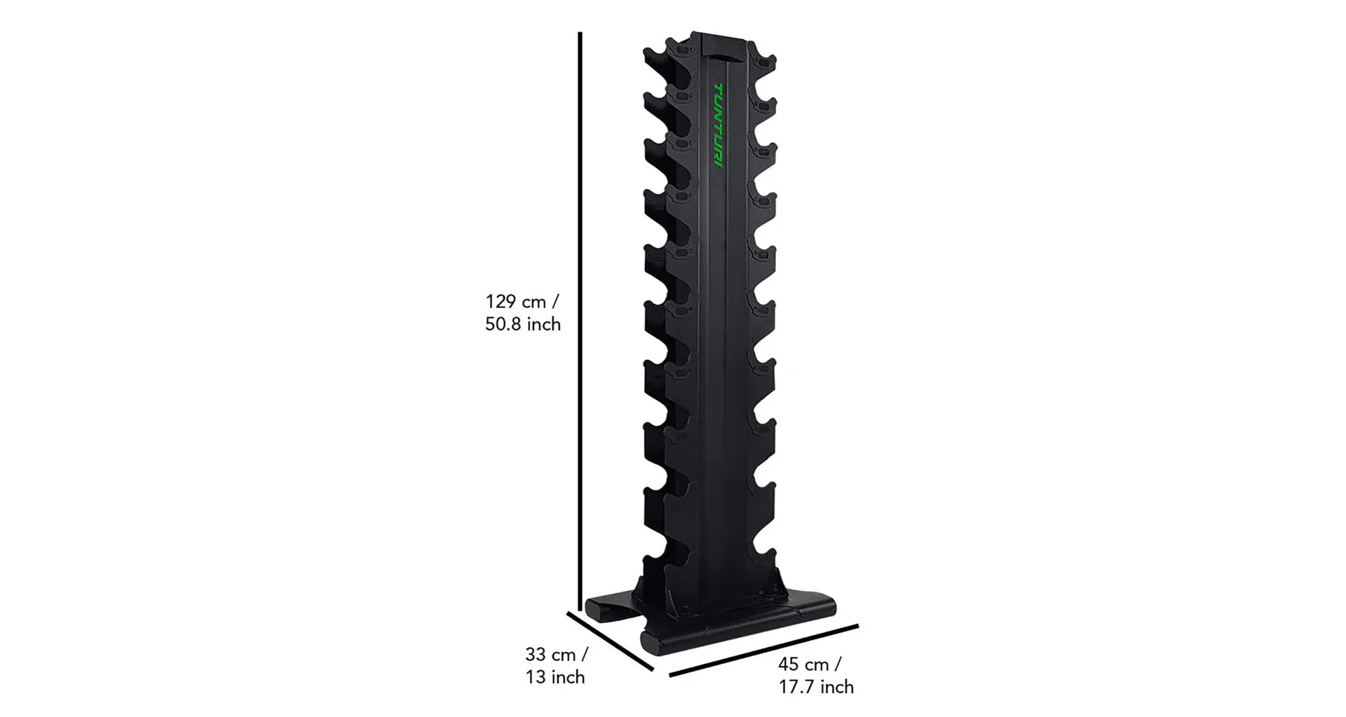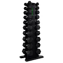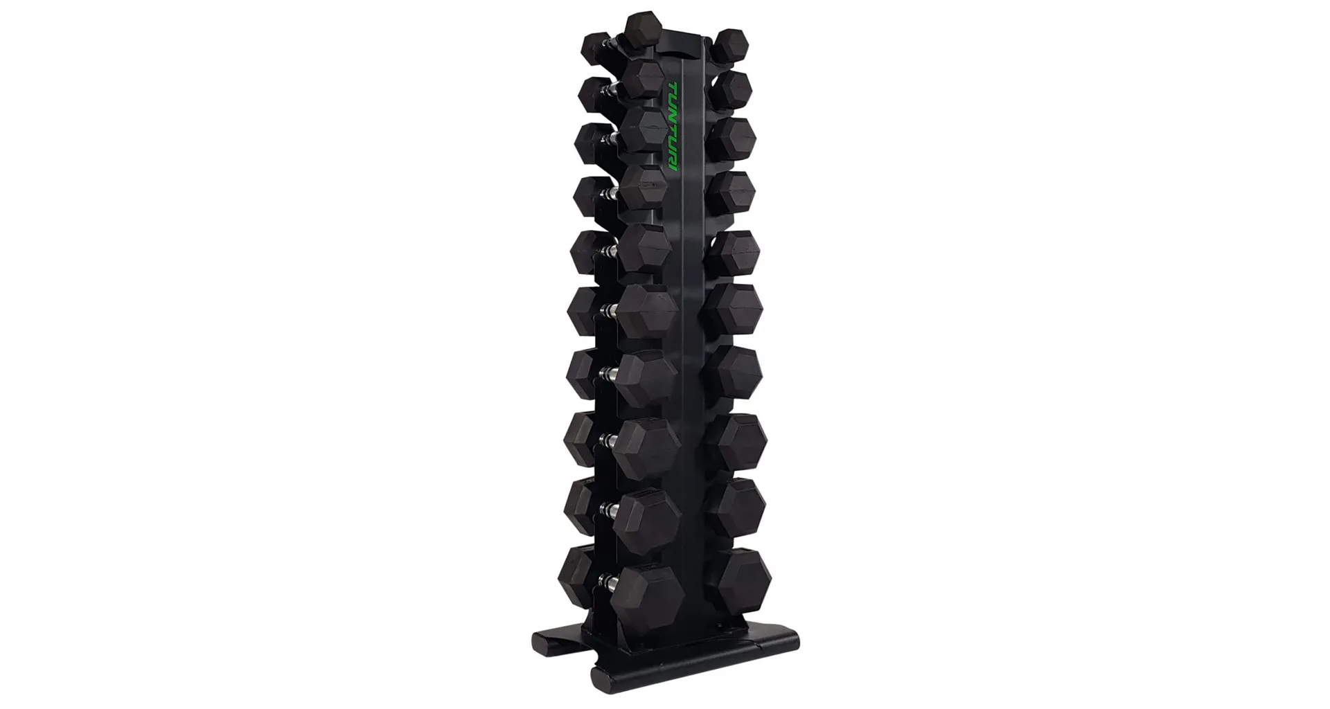 TUNTURI Pro Tower je stojan pro ukládání jednoručních činek určený pro domácí i komerční posilovny. Robustní ocelová konstrukce má kvalitní povrchovou úpravu vypalovaným lakem. Stojan nabízí úložný prostor pro 10 párů jednoručních činek.