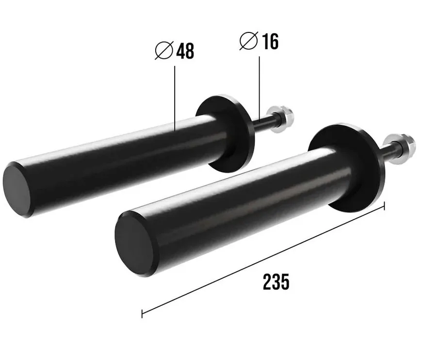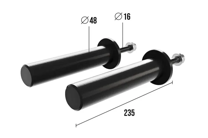 Robustní ocelová konstrukce zajišťuje dlouhou životnost a odolnost vůči opotřebení. Délka trnu 23,5 cm poskytuje dostatek prostoru pro umístění více kotoučů, zatímco průměr 48 mm je ideální pro standardní olympijské kotouče. Snadná instalace a bezpečné uchycení zajišťují stabilitu a bezpečnost při manipulaci se závažím.