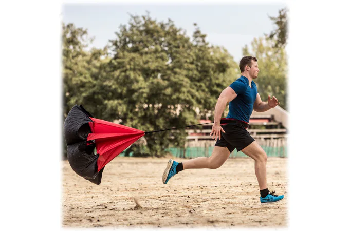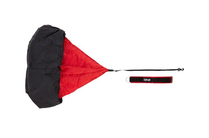 TUNTURI odporový padák pro běh je ideální pomocník pro zpestření tréninků. Po připevnění k tělu se při běhu roztáhne a díky tomu se zvýší Váš odpor těla. Pomoci většího odporu efektivněji zlepšuje vytrvalost i sílu nohou. Vhodný je pro krátké i dlouhé vzdálenosti. Padák je opatřen popruhem, který se připevňuje kolem pasu. Díky malým rozměrům je padák dobře skladný a lze jej používat jak venku, tak v tělocvičně.