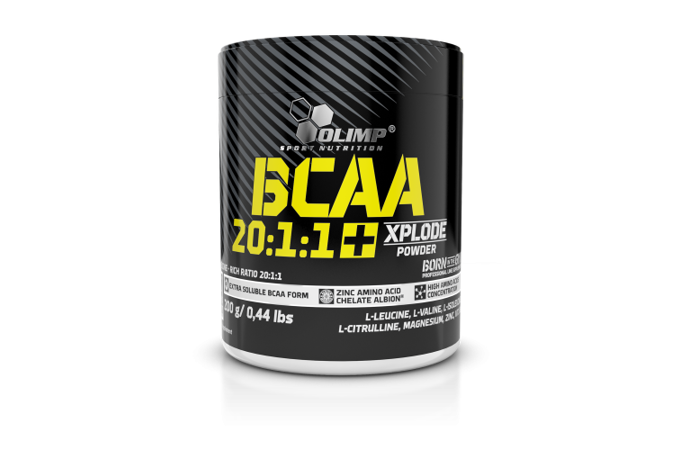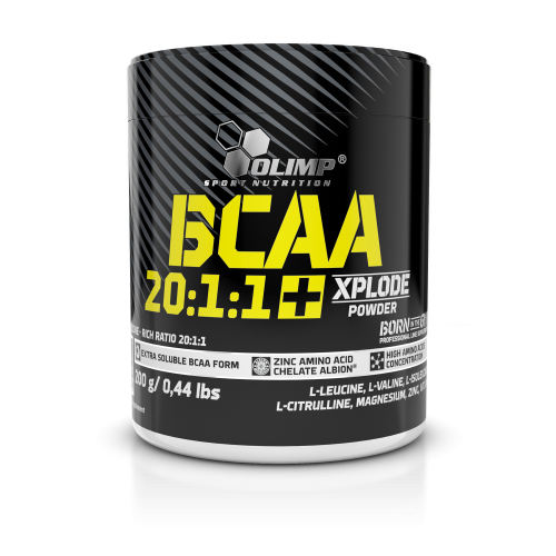 OLIMP SPORT NUTRITION BCAA 20:1:1 XPLODE POWDER je směs aminokyselin, minerálních látek a vitaminu B6 pro lepší výkon. Produkty Xplode vynikají rozpustností a intenzivní ovocnou chutí. Díky výborné rozpustnosti se aminokyseliny vstřebají neobvykle rychle a jsou tak tělu ihned k dispozici.Kromě rozvětvených aminokyselin tento produkt obsahuje také L-citrulin, minerální látky a vitamín B6. Tato směs podporuje vaskularizaci a poskytuje sílu pro ještě větší výkon během tréninku. Hořčík a vitamín B6 odpovídají za správnou funkci nervové soustavy a pomáhají redukovat únavu.