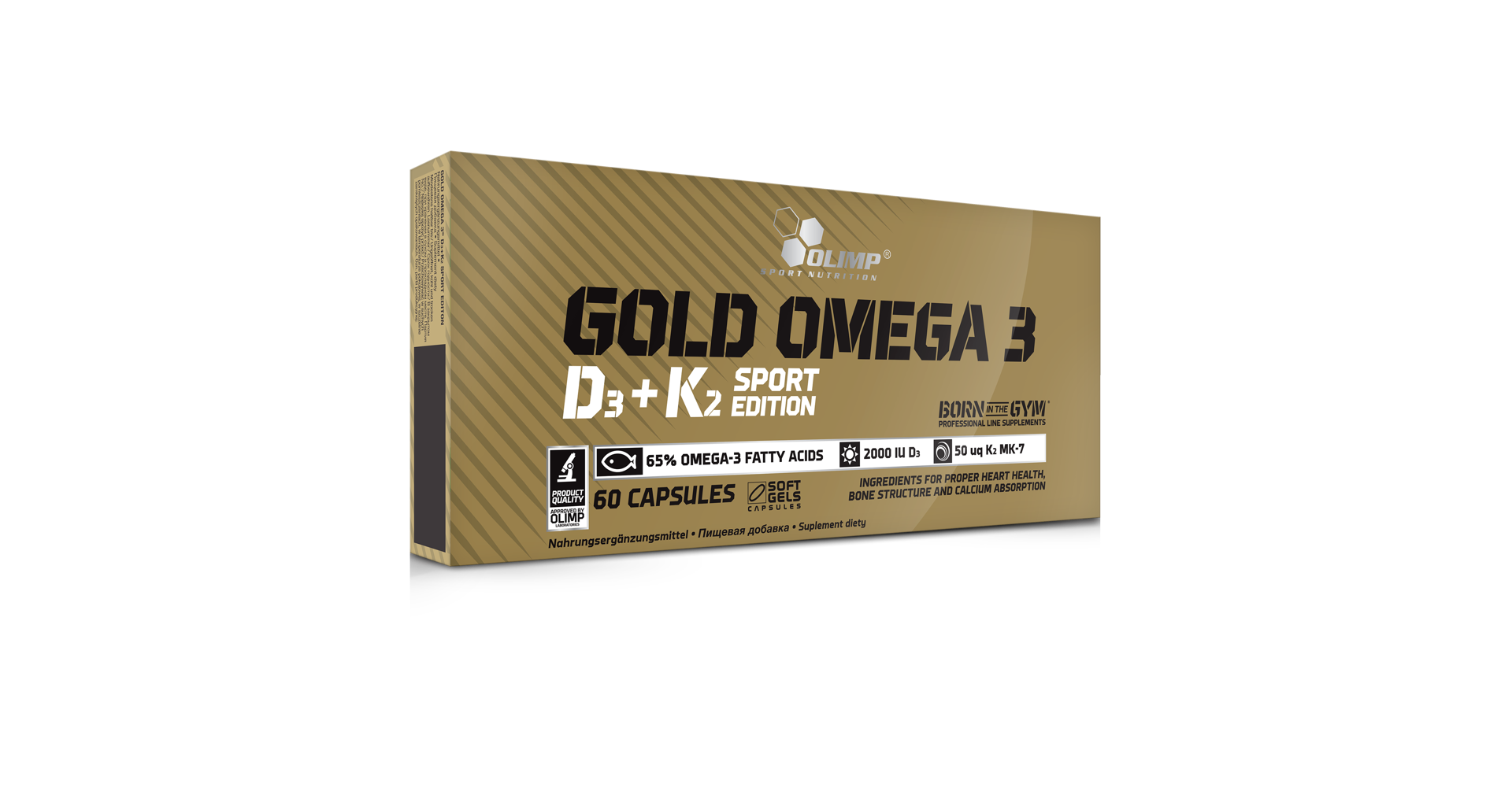 OLIMP Gold Omega 3 D3 + K2 Sport Edition jsou zdrojem nenasycených mastných kyselin s vysokým obsahem EPA a DHA, které nejsou snadno dostupné v přirozeném jídelníčku. To vše ve farmaceutické kvalitě, bez obsahu těžkých kovů a dalších znečišťujících složek. Tento produkt je obocený o vitamin D3, K2 a vitamin E.