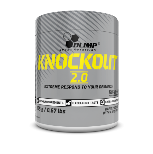 OLIMP KNOCKOUT 2.0 je přípravek určený pro maximalizaci silového výkonu, stimulaci vysoké intenzity tréninku a maximálního napumpování a prokrvení svalů. OLIMP KNOCKOUT 2.0 má formu prášku, který snadno rozpustíte ve vodě, výborně chutná a můžete jej okamžitě konzumovat.