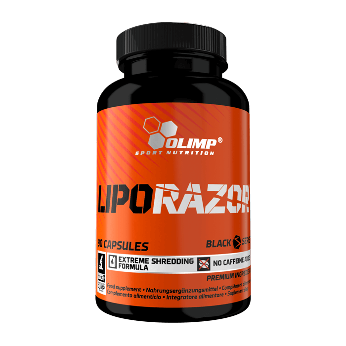 V tomto doplňku od značky Olimp najdete ingredience zvyšující termogenezi (extrakt z kajenového pepře), látky, které pomáhají odbourávat tuk (hořký pomerančový extrakt) a podporují dobrou náladu (kakaový extrakt). Přípravek Liporazor neobsahuje kofein, často používaný v jiných výrobcích ve velmi vysokých dávkách. To znamená, že tento doplněk na spalování tuků mohou užívat lidé s přecitlivělostí na kofein a před nočními tréninky.