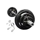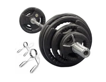 TUNTURI (MARCY) Olympic Weight Set 100 kg je kompletní set skládající se z obouruční olympijské hřídele s otočnými konci o délce 180 cm a ze sady litinových kotoučů s úchopem 2x15, 2x10, 4x5, 4x2,5, 4x1,25 kg.