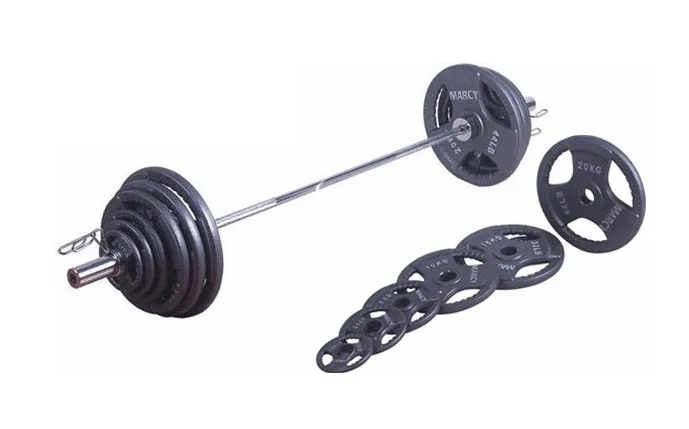 TUNTURI Olympic Weight Set 140 kg je kompletní set skládající se z obouruční olympijské hřídele s otočnými konci o délce 220 cm a ze sady litinových kotoučů s úchopem 2x20, 2x15, 2x10, 4x5, 4x2,5, 4x1,25 kg.