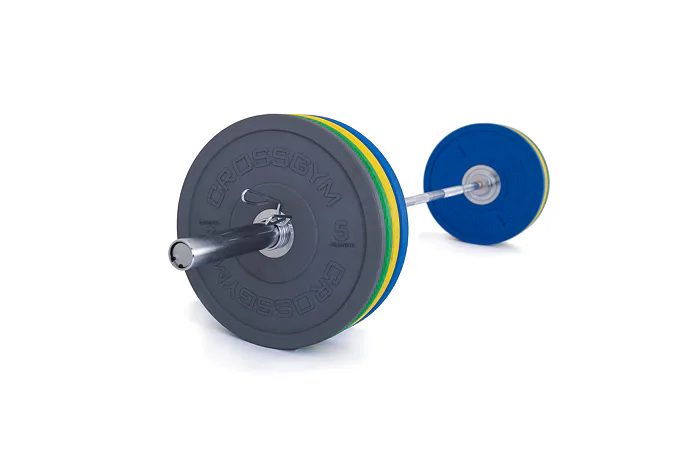Profesionální olympijská činka 120 kg s kotouči BUMPER CrossGym je určená pro klubové i domácí využití, je osazena komponenty splňujícími ty nejvyšší nároky. Komplet je sestavený z kvalitních komponentů, skladba setu zaručuje komfortní a bezpečný trénink. Součástí tohoto setu je olympijská hřídel na činku vč. uzávěrů a sada speciálních profesionálních Bumper kotoučů, vše s vrtáním 50 mm (průměr používaný ve fitnesscentrech). Uvedená váha setu je včetně osy.