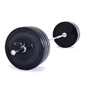 Profesionální olympijská činka 120 kg s kotouči BUMPER training je určená pro klubové i domácí využití, je osazena komponenty splňujícími ty nejvyšší nároky. Komplet je sestavený z kvalitních komponentů, skladba setu zaručuje komfortní a bezpečný trénink. Součástí tohoto setu je olympijská hřídel na činku vč. uzávěrů a sada speciálních profesionálních Bumper kotoučů, vše s vrtáním 50 mm (průměr používaný ve fitnesscentrech). Uvedená váha setu je včetně osy.