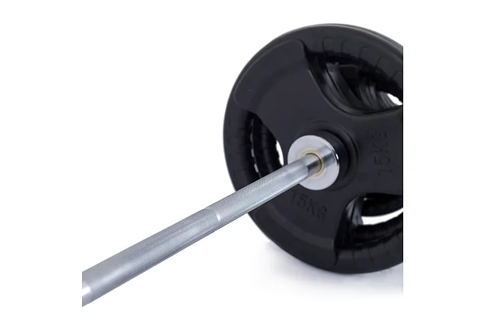 Obouruční olympijská hřídel TRINFIT 2 200 mm/50 mm s pružinovými uzávěry určena pro kotouče s vrtáním 50 mm určená pro posilovací trénink. Olympijská osa má délku 2 200mm, je z kvalitní oceli s chromovou úpravou. Průměr otočných konců je 50 mm. Osa má úchopovou část průměru 28 mm s vroubkovanou úpravou která zajišťuje protiskluzovost a tudíž i bezpečnější provedení cviků. Tyč je vyrobena z tvrzené chromované oceli a její nosnost je 315 Kg (700 LB).