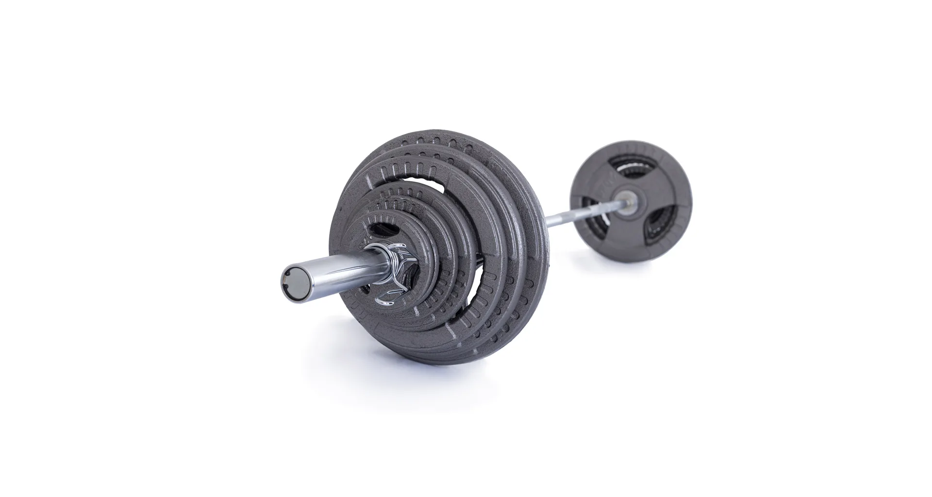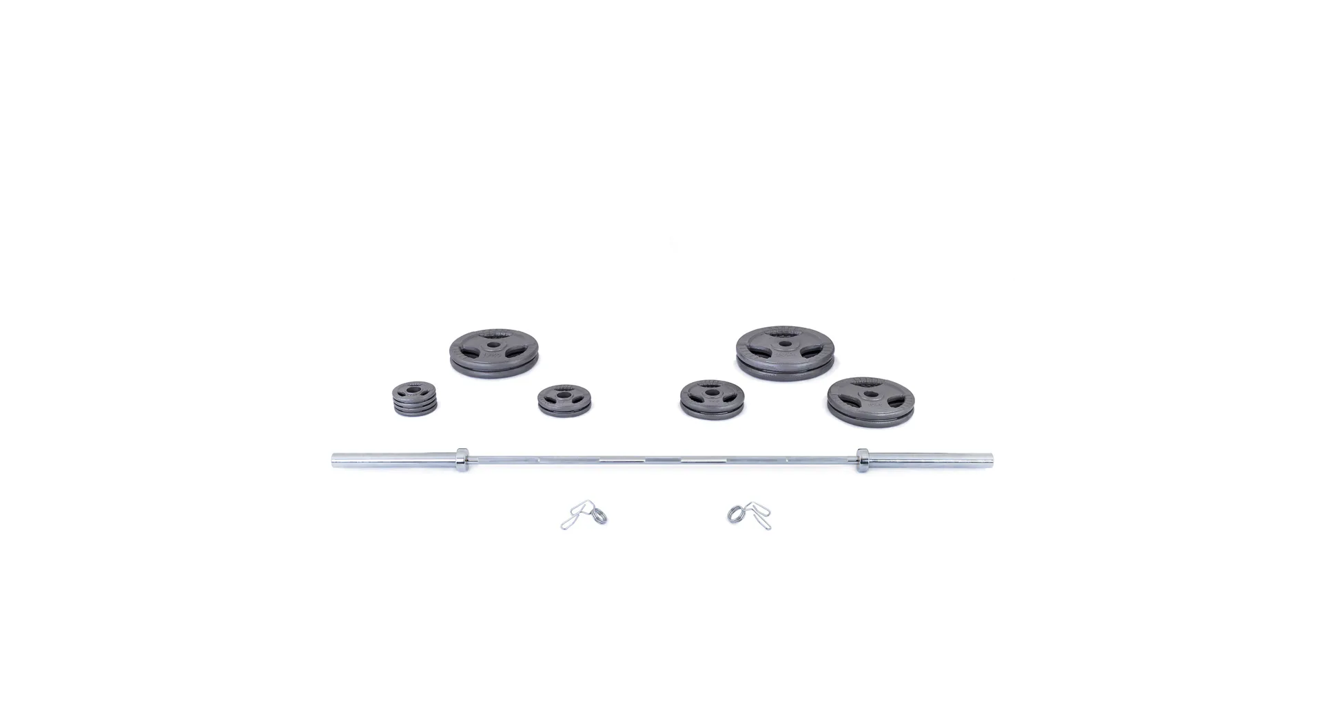 Součástí olympijského setu je velká obouruční hřídel na činku 2 200 mm včetně uzávěrů a sada litinových kotoučů s odolnou povrchovou úpravou HAMMERTONE určenou pro komerční využití. Všechny komponenty mají sandardní parametry. Uvedená váha setu je včetně osy.