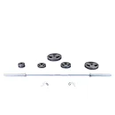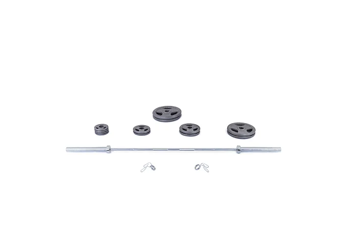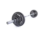 Součástí olympijského setu je velká obouruční hřídel na činku 2 200 mm včetně uzávěrů a sada litinových kotoučů s odolnou povrchovou úpravou HAMMERTONE určenou pro komerční využití. Všechny komponenty mají sandardní parametry. Uvedená váha setu je včetně osy.