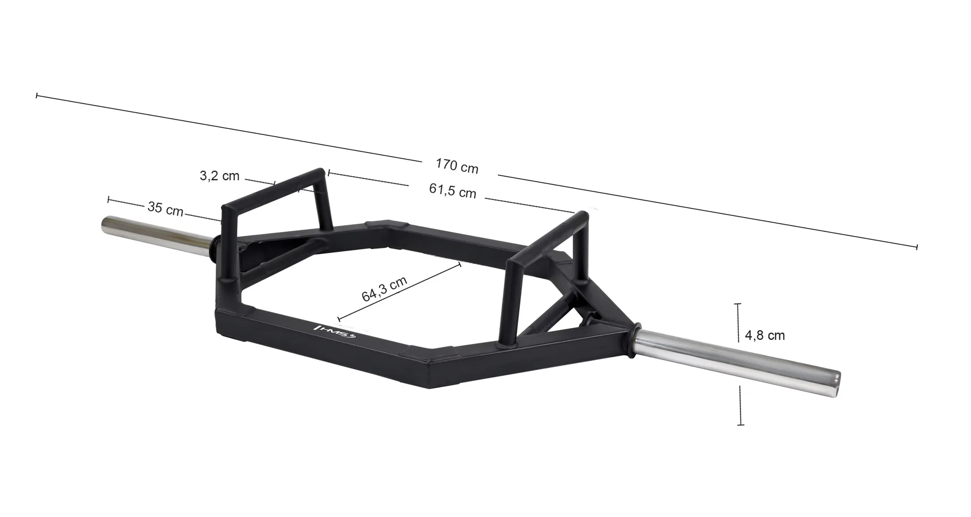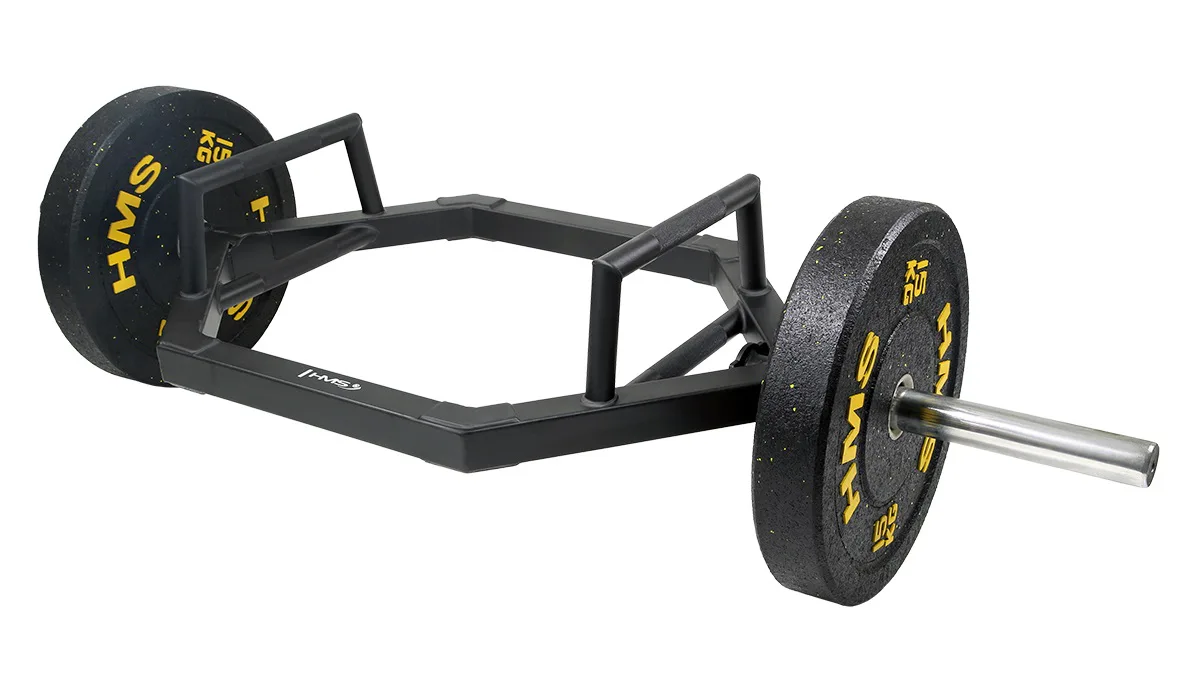 HEX TRAP BAR HMS GHX02 je olympijská osa disponující jedinečním designem. Úchopové části jsou opatřeny speciálním protiskluzovým materiálem pro maximální stabilitu při tréninku. Těžiště je přesně uprostřed konstrukce, takže nedochází k přetěžování páteře jako u klasické osy při mrtvém tahu apod.