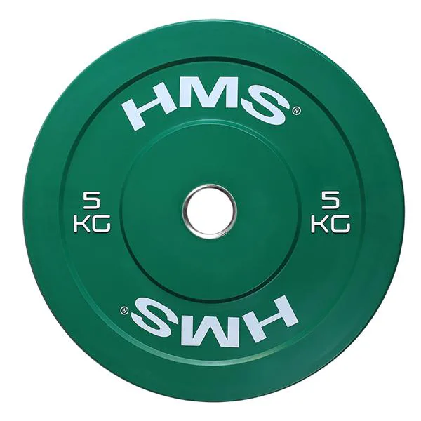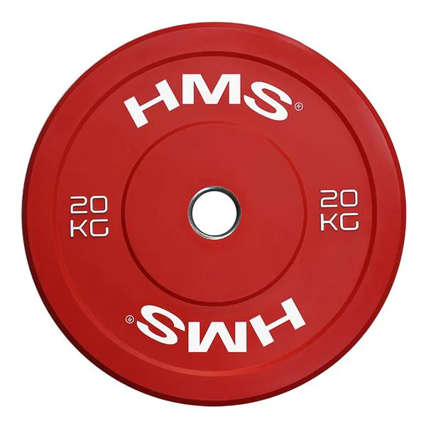 Olympijský kotouč bumper HMS vhodný pro vzpěračský a crossfit trénink. Jeho hlavním parametrem je odolnost, kdy i po odhodu z velké výšky, zůstane kotouč i podloží bez známky poškození. Kotouč je určen pro olympijské osy s průměrem trnů 50 mm.